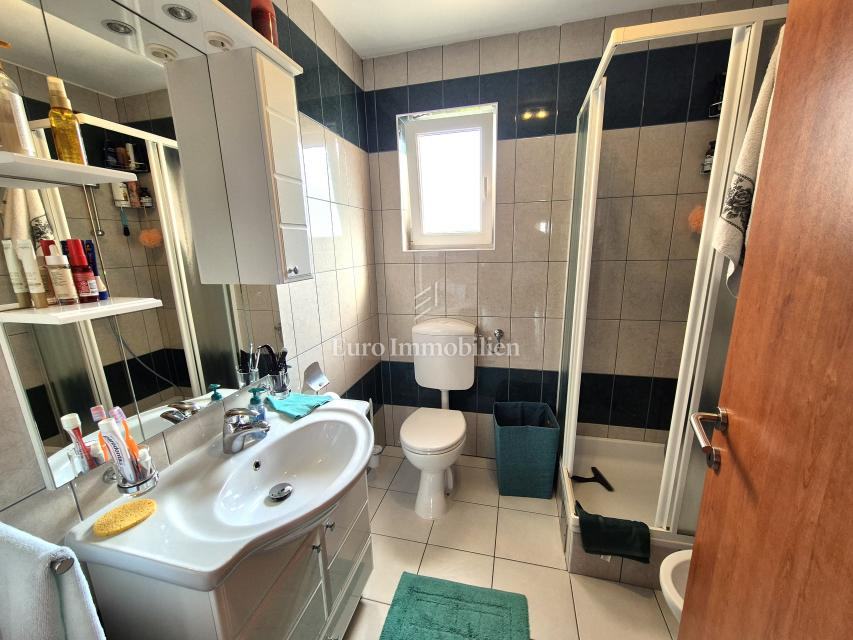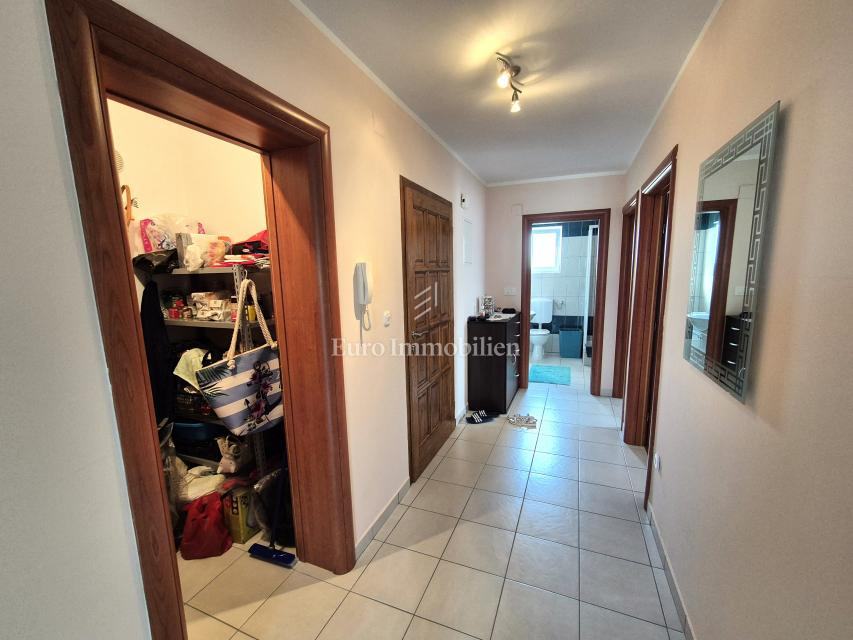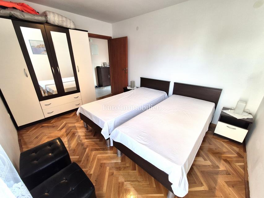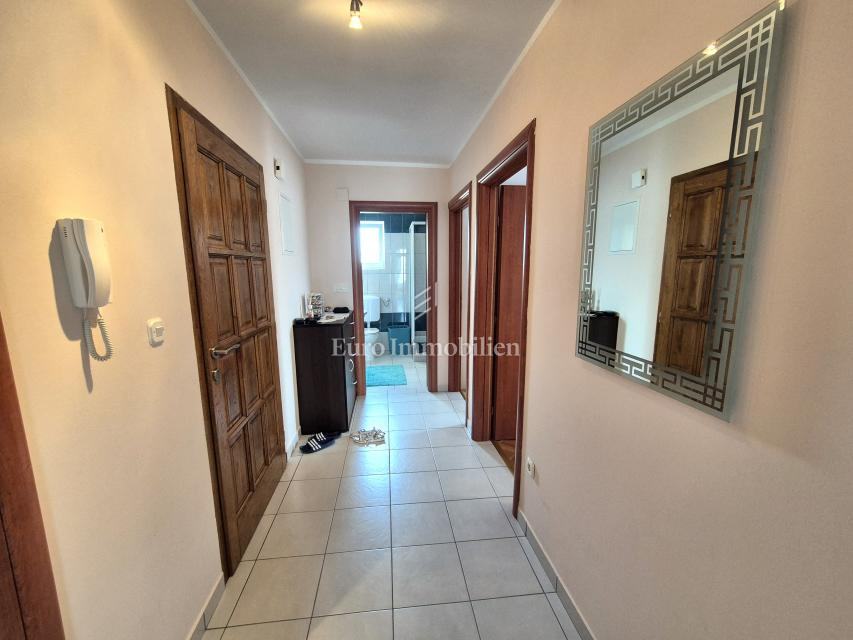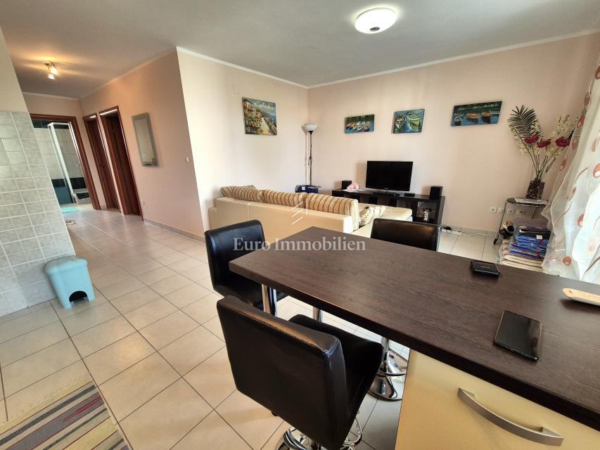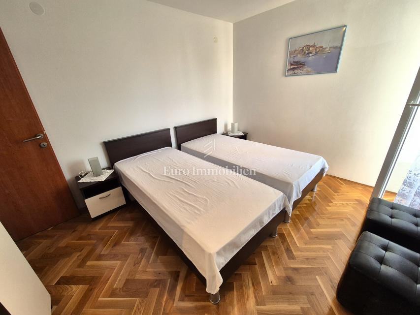 Ukupna netto površina apartmana je 69.38 m2. Apartman ima odličan raspored, vrlo je komforan, a sastoji se od ulaznog hodnika, dvije spavaće sobe, kuhinje sa dnevnom sobom i blagovaonom, ostave, loggie površine 14,30 m2 s pogledom na more i balkona površine 2,40 m2. Apartman se prodaje namješten i spreman je za korištenje. Malo je korišten i interijer je u odličnom stanju. Pripada mu jedno parkirno mjesto, a sva dokumentacija je uredna.