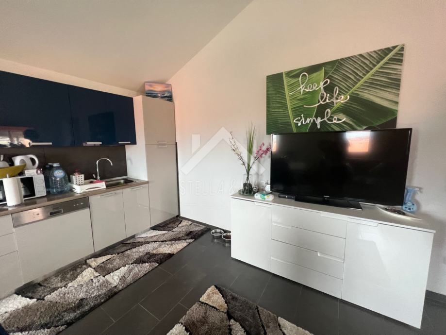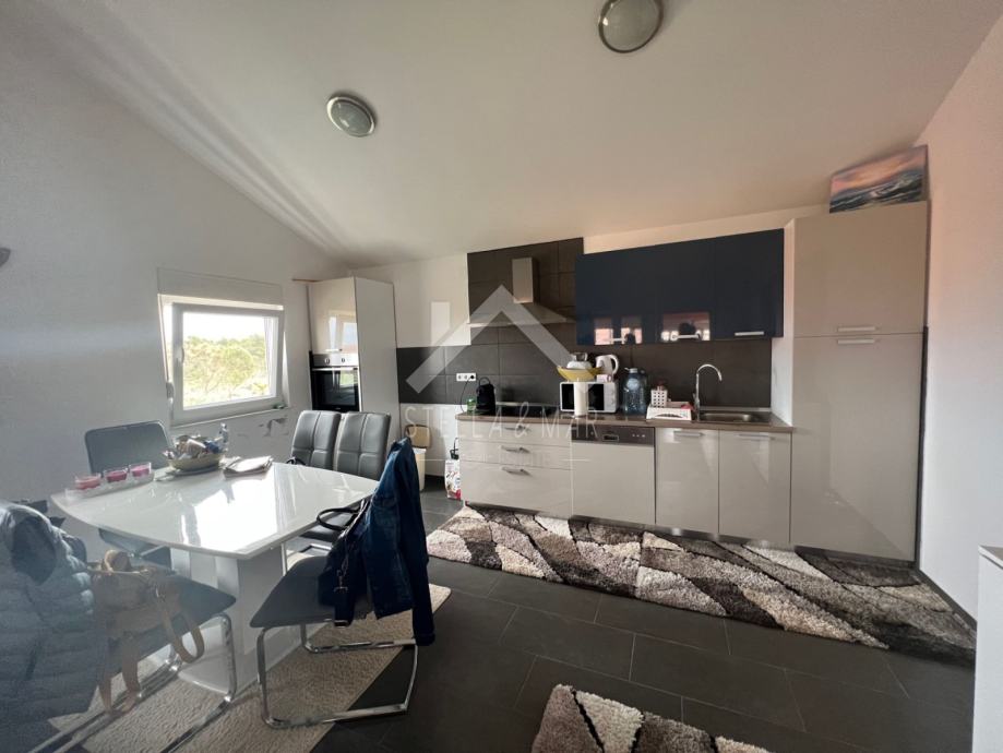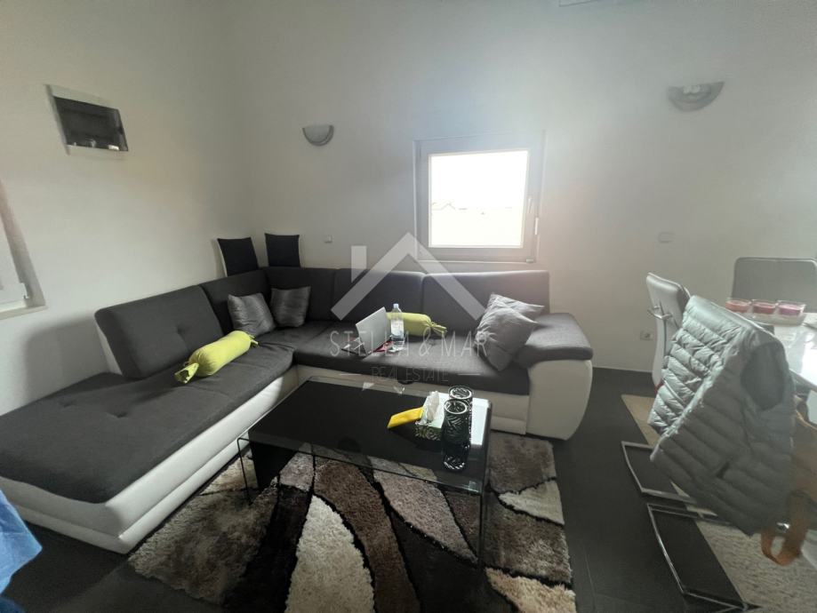 Apartman je površine 100 m2 i nalazi se na prvom katu. Sastoji se od 3 spavaće sobe, prostranog dnevnog boravka, kuhinje sa blagovaonicom, kupatila i prekrasne terase koja je natkrivena.