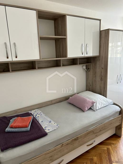 Posredujemo u najmu komfornog dvosobnog stana, koji se nalazi u blizini centra grada. Smješten je na visokom prizemlju stambene zgrade. Sastoji se od ulaznog dijela, prostranog dnevnog boravka sa kuhinjom i blagavaonom, dvije spavaće sobe, kupaone te malog wc-a. Stan je osvijetljen i prozračan jer je orijentiran sjever-jug. Idealna lokacija u blizini svih sadržaja potrebnih za ugodan gradski život.