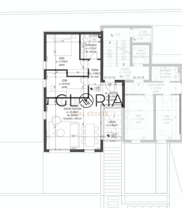- dnevni boravak s kuhinjom i blagovaonicom 24,48 m2