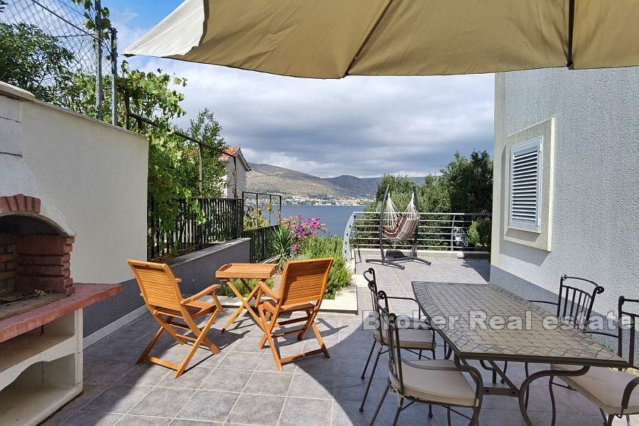 Prostrani dvosobni stan za dugoročni najam, ukupne stambene površine od 63 m2 i terase od 42 m2 s pogledom na more, smješten na etaži prizemlja na mirnoj lokaciji u Okrugu Donjem.