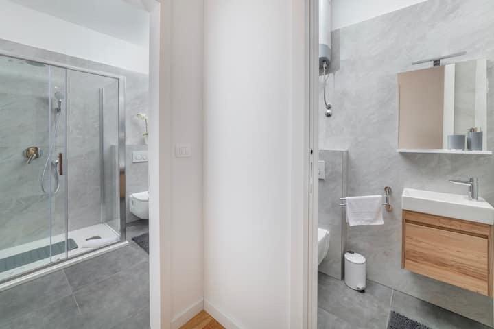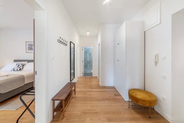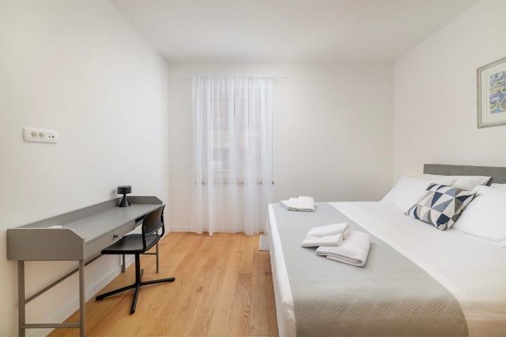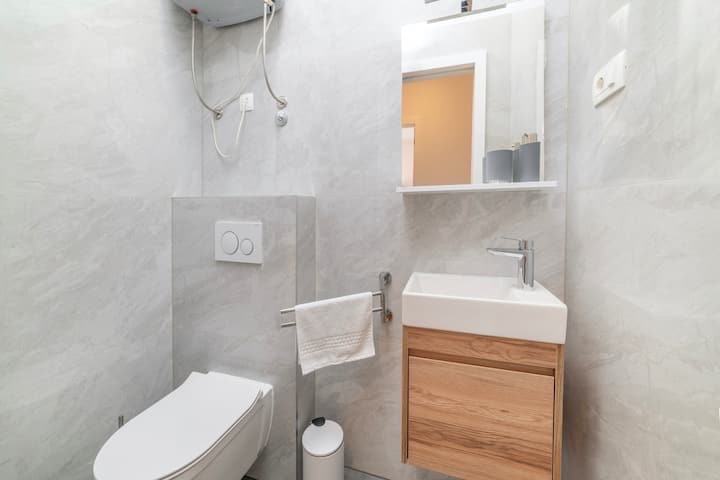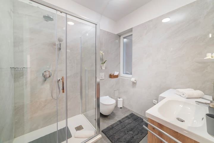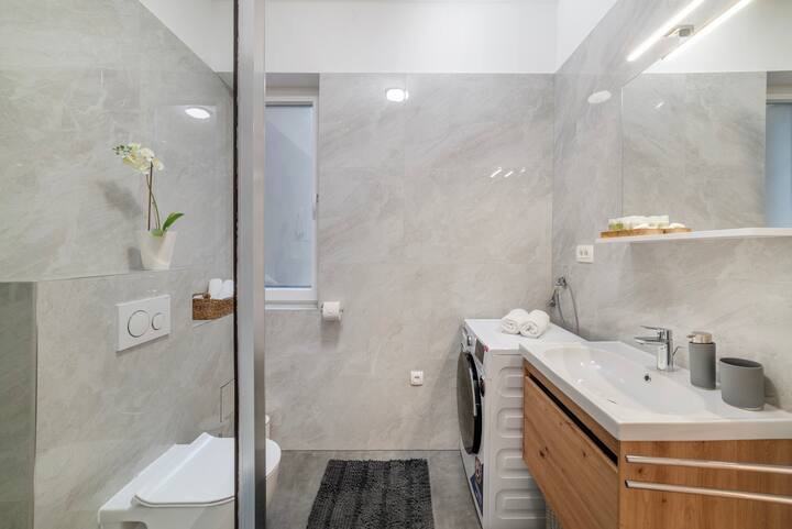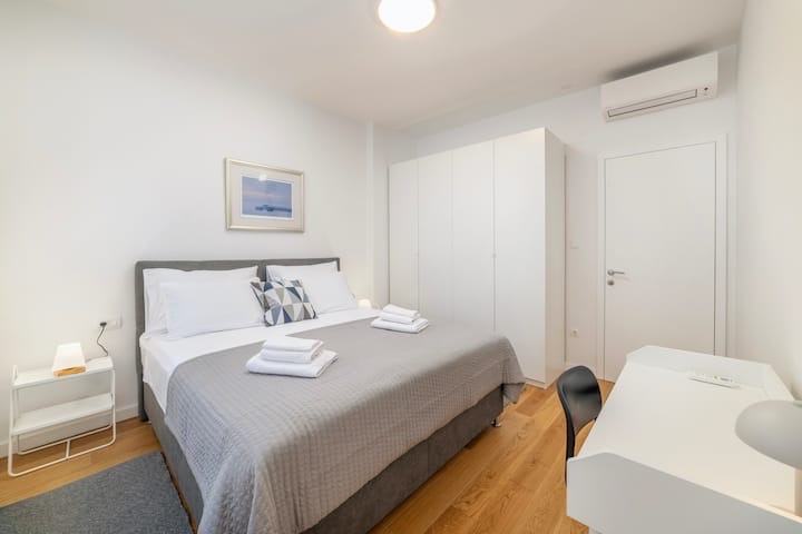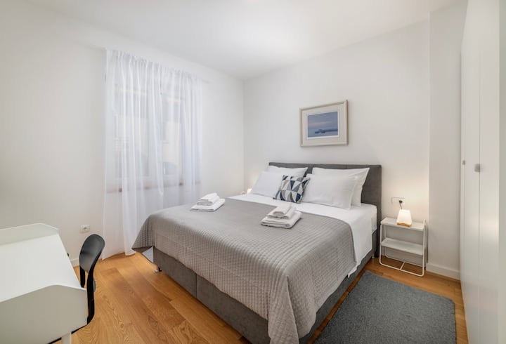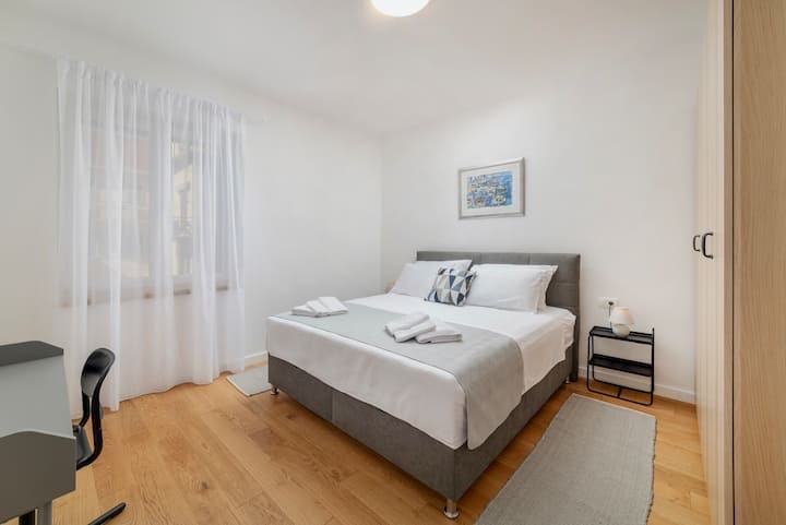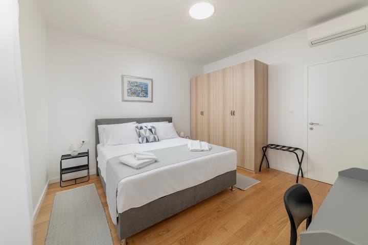We are renting a newly renovated, spacious and luxurious apartment located in one of the best locations in the city, just a 6-7 minute walk from the center of Split (old town) and less than a 3-4 minute walk from the famous Bačvice beach. The apartment has 96 square meters. It consists of a large dining room with a fully equipped kitchen and a spacious living room with a large sofa (bed for two people (160*200), a large bathroom (with a washing machine and dryer) and a small toilet, 2 spacious bedrooms, each with an extra large bed for two people (180*200) and terraces bathed in the sun with a wonderful view of the city. Extremely fast Wi-Fi connection. Available for rent until April 1, 2026. (possibility to rent untill May 1) The price is €1,200 + utilities included!