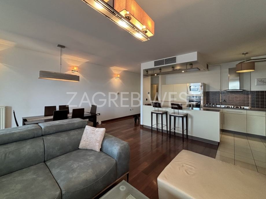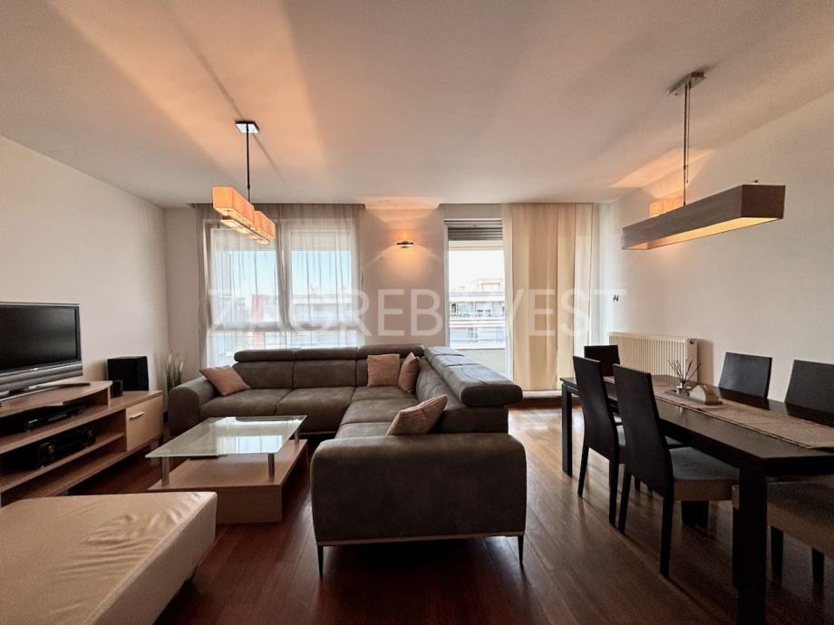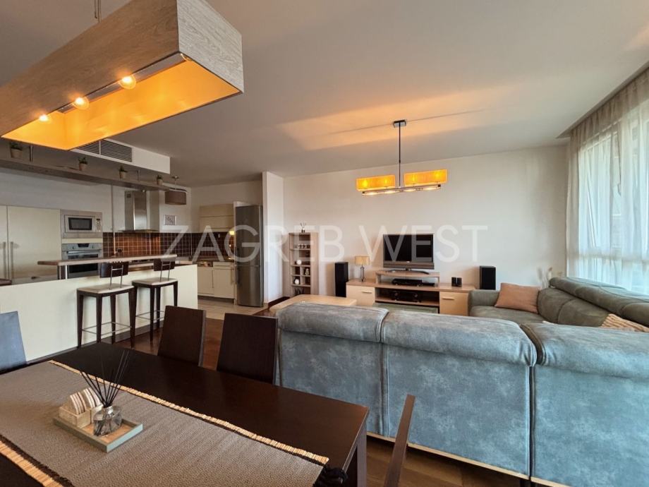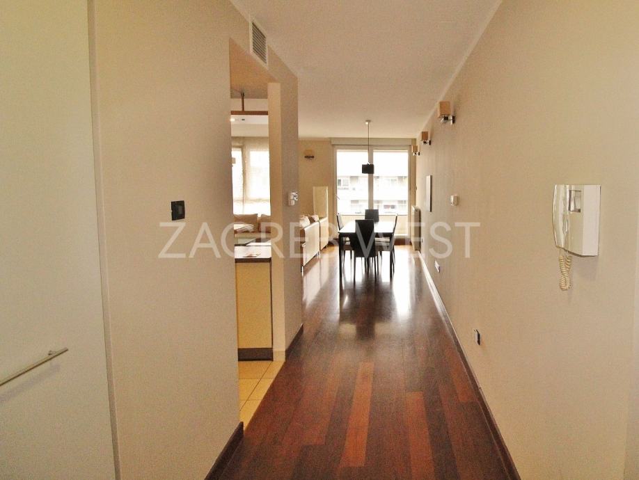 Sastoji se od ulaznog dijela s ugrađenim ormarom i gostinjskim wc-om, prostrane dnevne sobe s blagovaonicom i kuhinjom, koje izlaze na veliku terasu s pogledom na zapad, što prostoru daje puno dnevnog svjetla. U drugom dijelu stana su dvije spavaće sobe, velika garderoba s ugrađenim ormarima, i kupaonica. Stan dolazi s garažnim parkirnim mjestom.