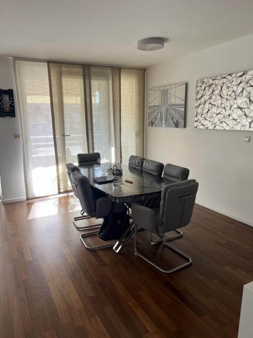 U stanu je lijepo odijeljen dnevni dio od spavaćeg dijela. Iz predsoblja se ulazi u prostrani dnevni dio od skoro 50 m2 koji se sastoji od kuhinje s blagovaonicom povezane s dnevnim boravkom, iz kojeg se izlazi na lođu južne orijentacije. Stan je iznimno svijetao i ugodan za boravak. Spavaći dio je odvojen vratima te se u njemu nalaze jedna prostrana bračna spavaća soba i dodatne dvije spavaće sobe, velika kupaonica s masažnom kadom. U dodatnu kupaonicu se ulazi iz predsoblja. U dnevnom dijelu je i prostrana ostava odijeljena vratima.