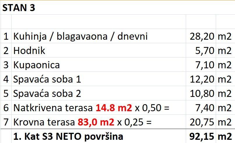 Stan - prizemlje S3 NETO površina 92,15 m2