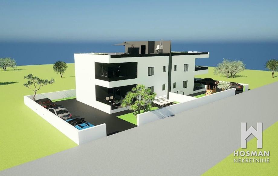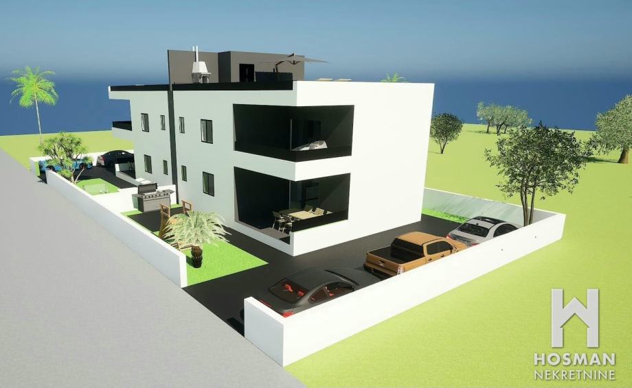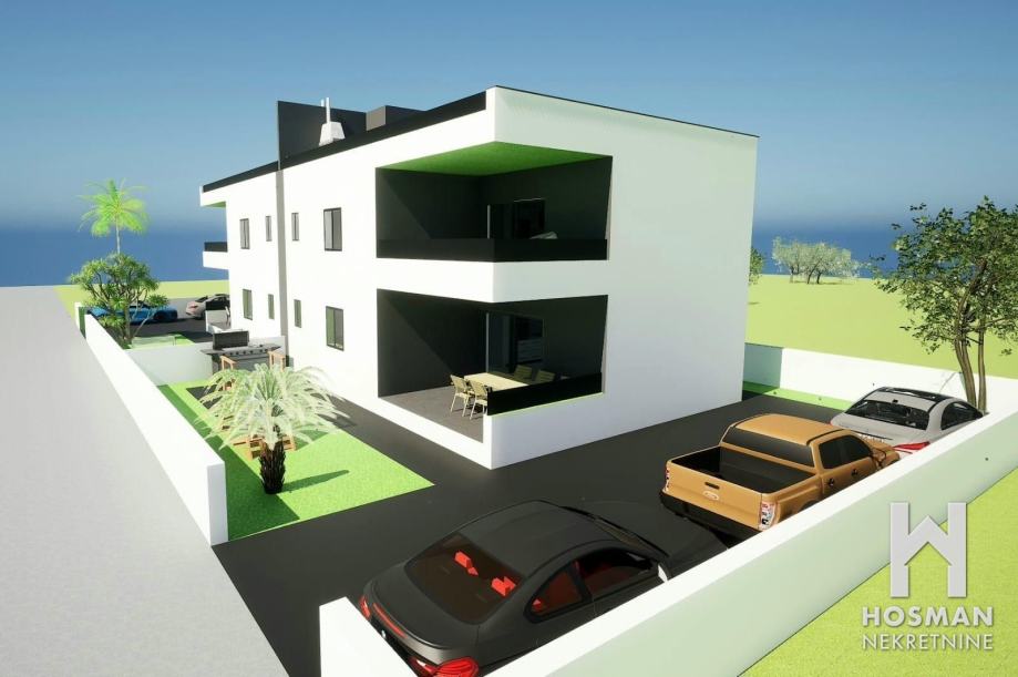 Stambena zgrada sa četiri stana izgrađena je na parceli na kojoj je pozicionirana na središnjem dijelu, tako da se u dvorište ulazi sa dva kolna ulaza, na način da dva stana koriste jedan ulaz dok druga dva stana koriste drugi ulaz iz razloga da se postigne velika privatnost za vlasnike stanova.
