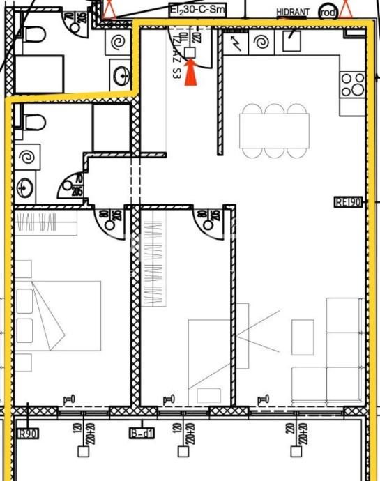 Stan S3 se nalazi na suterenskoj etaži u zgradi s ukupno 28 jedinica, stambene površine 92,02m2 i ukupne obračunske površine 84,67m2. Sastoji se od: hodnika, kuhinje+blagavaonica+dnevni boravak, 2 spavaće sobe, kupaonice i prostrane lođe od 29,41m2 (koef. 0,75=22,06m2).