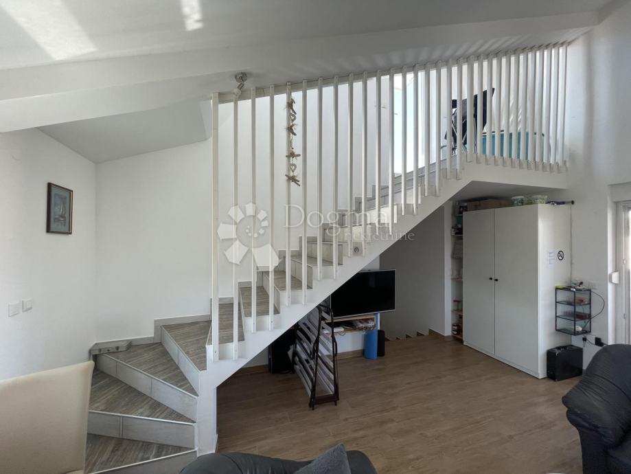 Vrhunac ovog već nevjerojatnog stana su unutarnje stepenice koje vas vode na veliku krovnu terasu. Vaš će pogled zasigurno zastati na plavetnilu mora koje stvara idiličan horizont za uživanje zaklonjeno od znatiželjnih pogleda svijeta. Bilo da se radi o sunčanju uz miris morske soli ili opuštanju uz piroteskne zalaske sunca, svaki trenutak biti će uspomena.