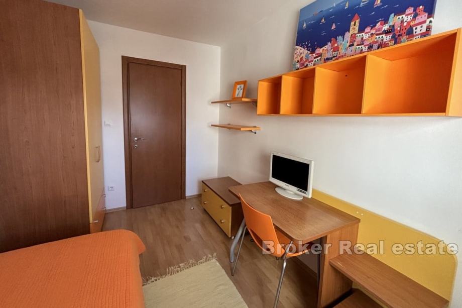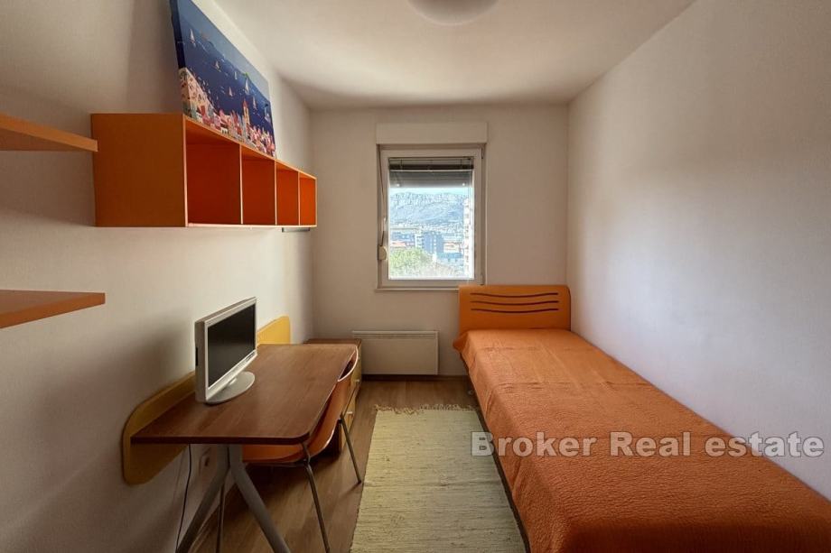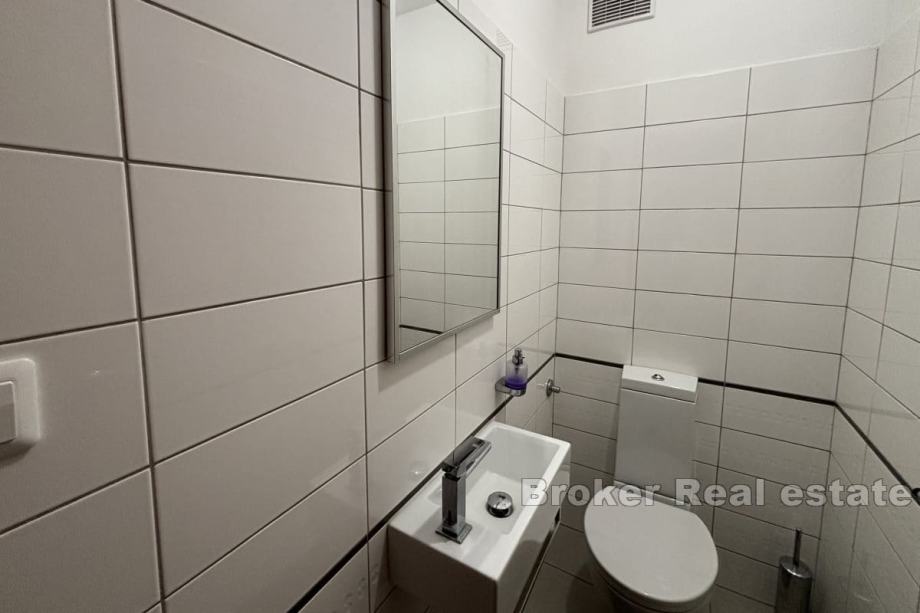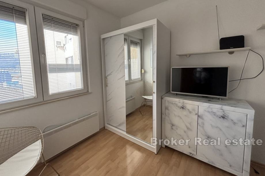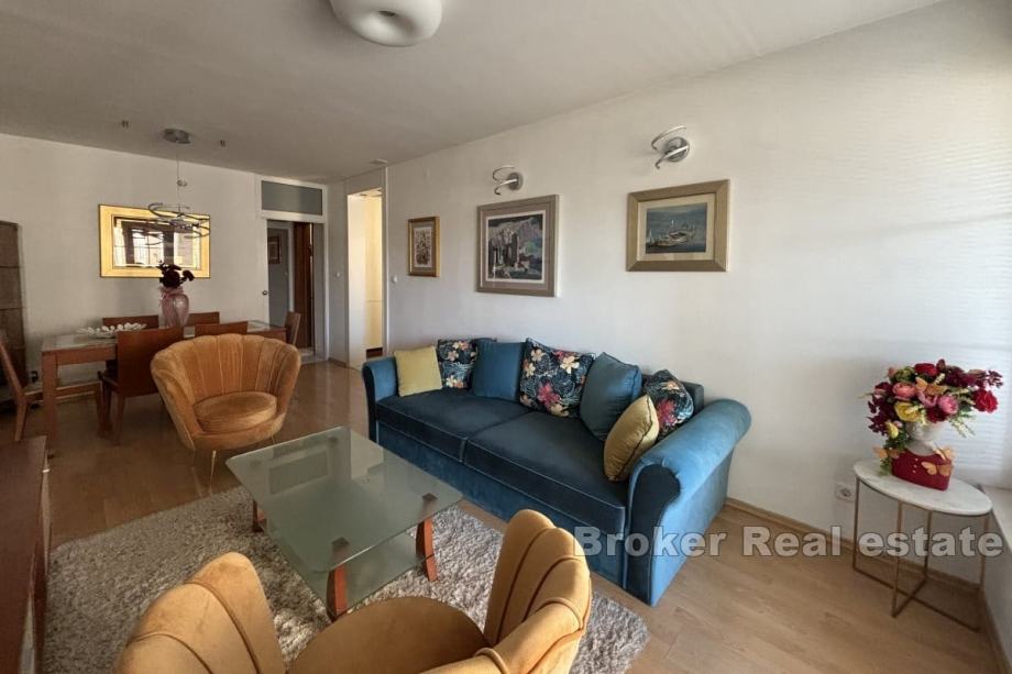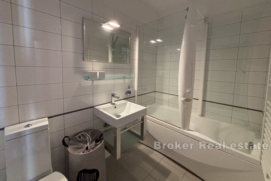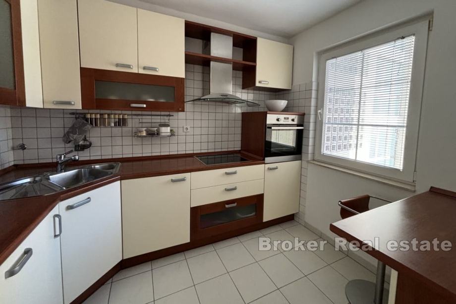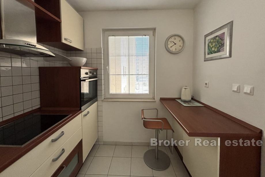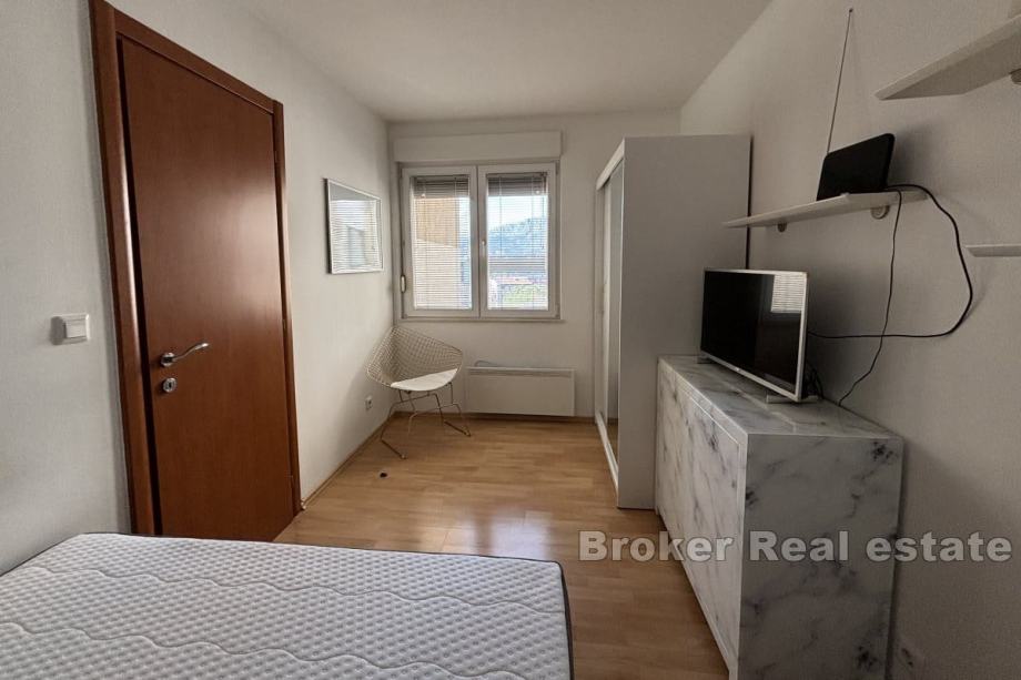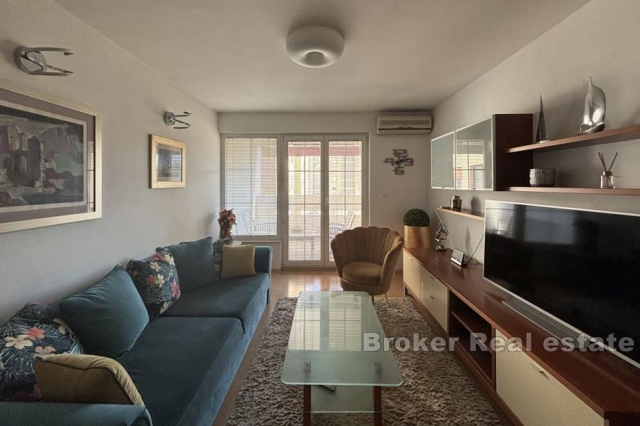 U potpunosti je namješten i opremljen te se kao takav i iznajmljuje. Grijanje i hlađenje se odvija putem dva klima uređaja, a stan osigurava i garažu na drugoj etaži etažnog parkirališta.