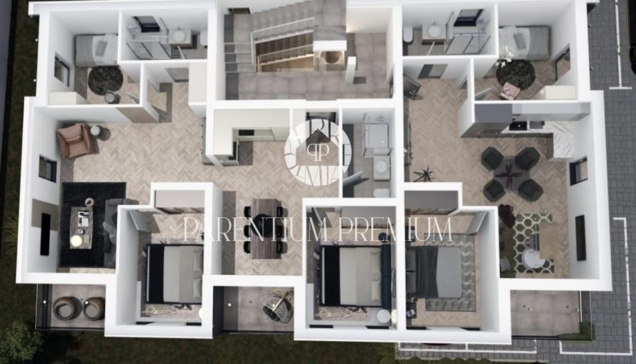 Stan se sastoji od ulaznog prostora kroz koji se dolazi do funkcionalne kuhinje sa blagovaonom uz puno korisnog prostora koji se spaja sa dnevnim dijelom koji je odvojen i spojen sa izlazom na terasu koja je natkrivena. U stanu se još nalaze čak 3 spavaće sobe i 2 kupaonice što pruža uistinu visok nivo komoditeta u boravku.