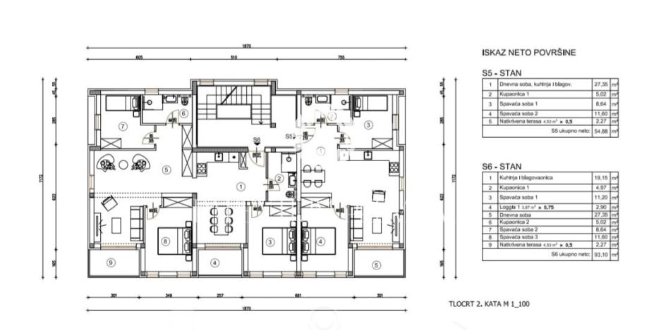 Stan "S4" od 93,10m2 smjestio se na 2. katu ove zgrade.