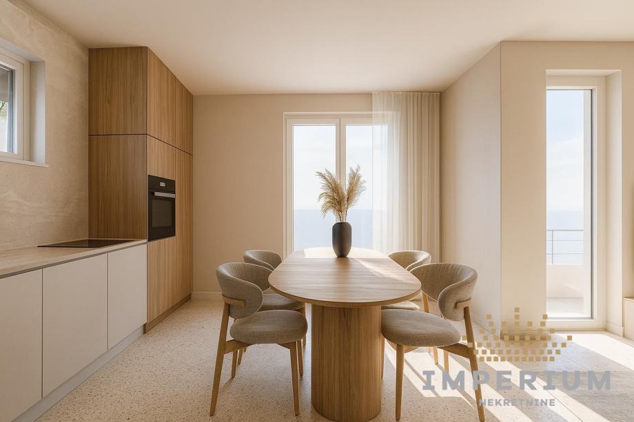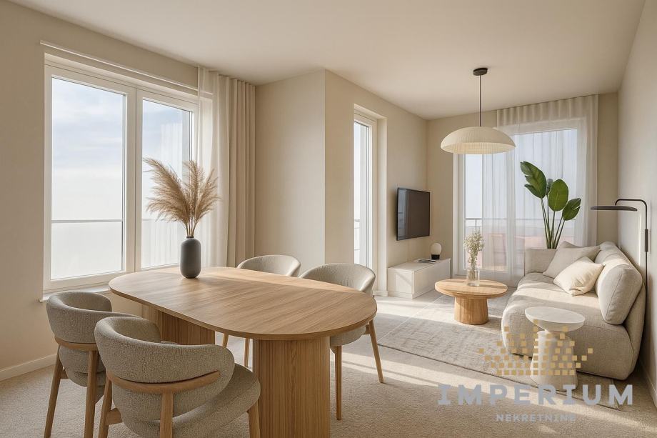 kuhinje s blagovaonicom i dnevnim boravkom s direktnim izlazom na balkon južne i zapadne orijentacije s panoramskim pogledom