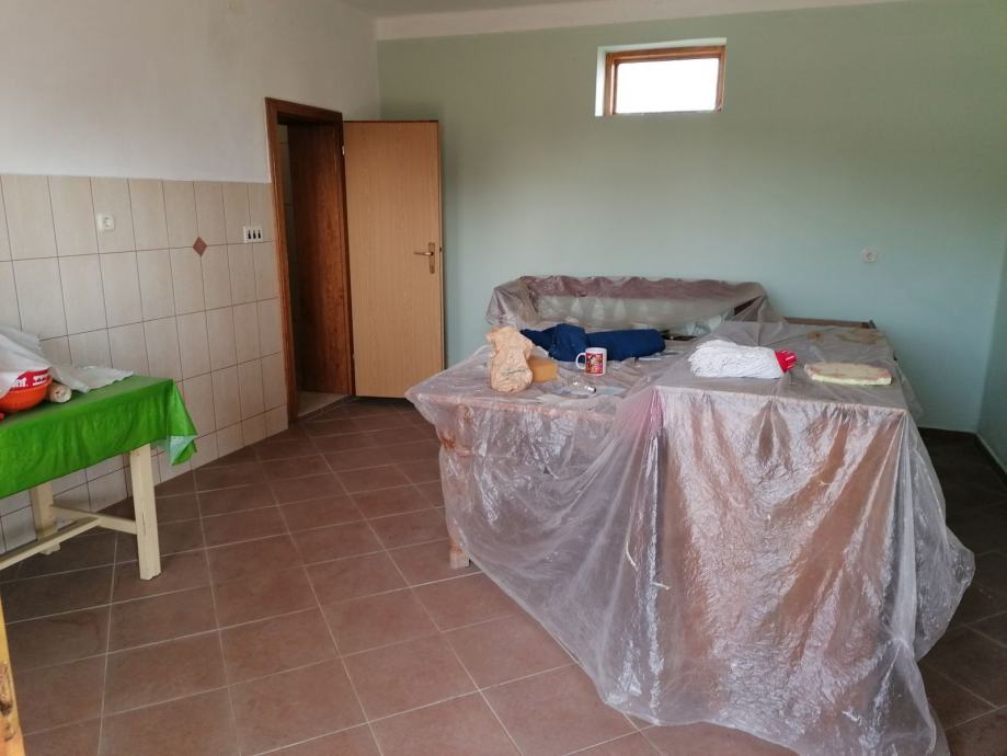 Kuća se sastoji od hodnika, 3 sobe, 2 kupaonice, kuhinje, terase (trijem) te ljetne kuhinje. Podovi su obloženi parketom i pločicama