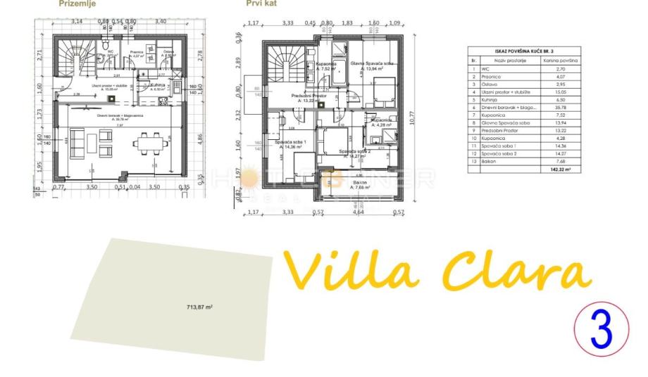 Parcela C, površine 714 m2, s projektom VILLA CLARA 70.000 €