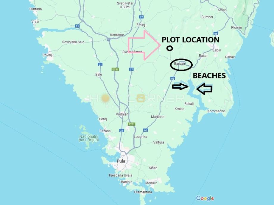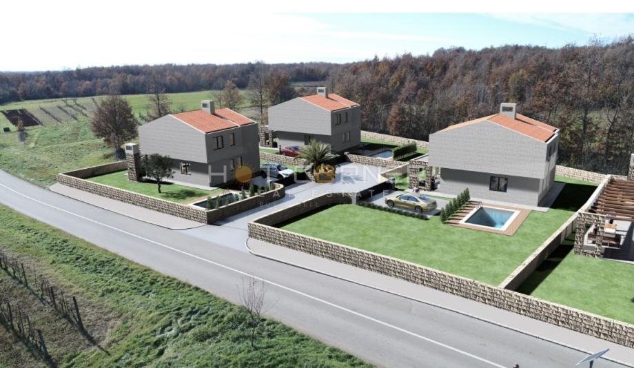 Na prekrasnoj lokaciji, okruženoj netaknutom prirodom, s pogledom na more, na ulazu u malo idilično selo Koromani u kome se nalazi nekoliko kuća za odmor, na 5 km od prekrasnog gradića Barban, te na 15 minuta vožnje od prvih plaža u Trgetu, Rebićima, Raklju ili Dugoj Uvali, nudimo na prodaju kompleks od 4 građevinske parcele, sa već izrađenim arhitektonskim projektom za izgradnju 4 vile katnice sa bazenima u modernom stilu sa mediteranskim elementima, svaka s pogledom na more. Čisto vlasništvo, sva infrastruktura (struja, voda) u neposrednoj blizini, lokacijska informacija dostupna na uvid.