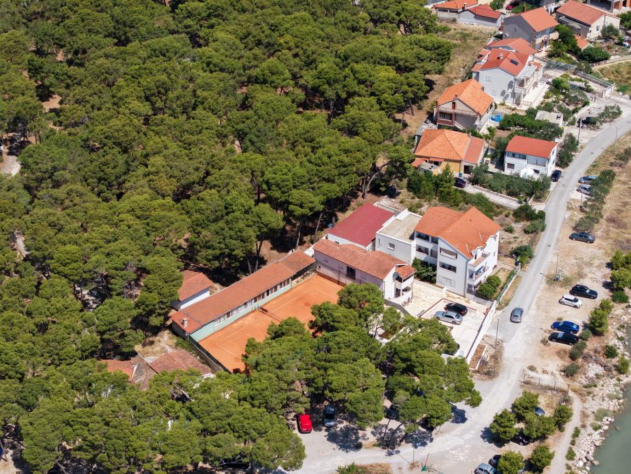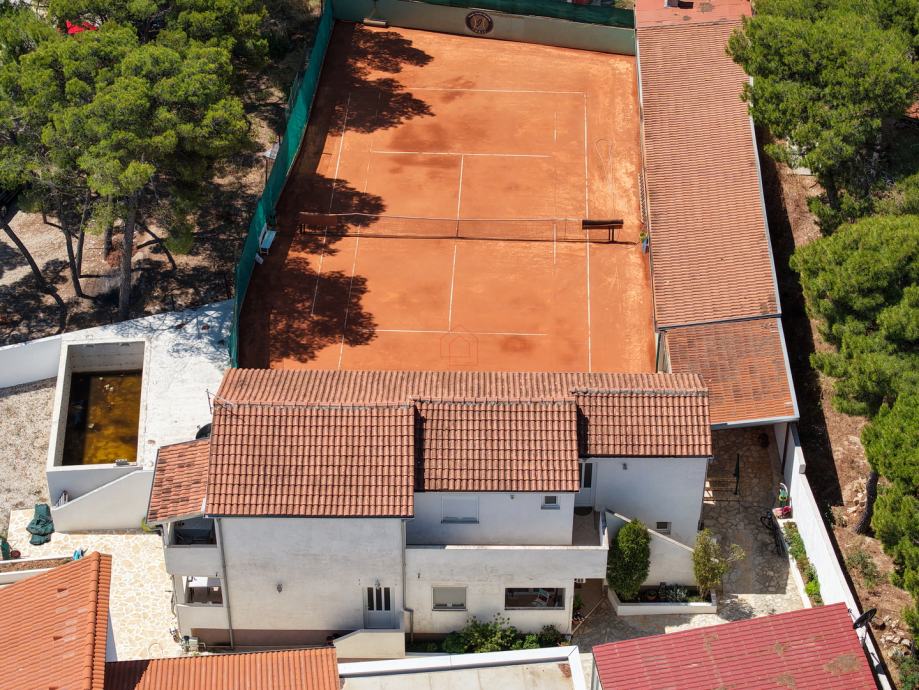 Prodaje se jedinstveni kompleks od ukupno tri zgrade sa pomoćnim ugostiteljskim kompleksom i održavanim tenis terenom. Kompleks se sastoji od lijepo ograđene međe, te se sastoji od prostranog parkirališta za ukupno 5 automobila, prostora za dječje igralište, pripreme za bazen i prostorije za strojarnicu, jedne zgrade sa dva jednosobna apartmana u prizemlju te dva dvosobna apartmana na prvom katu. Druga zgrada je prizemnica površine 96m2 i postoji pravomoćna građevinska dozvola za dizanje još jedne etaže od 96m2, te treća vila najnovije gradnje od 103m2 tlocrtno sa bazenom. U kompleksu se nalazi veliki održavani tenis teren i popratni objekt u kojem se nalazi pečenjara, prostorija za druženje i šank.