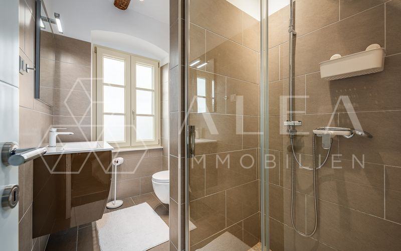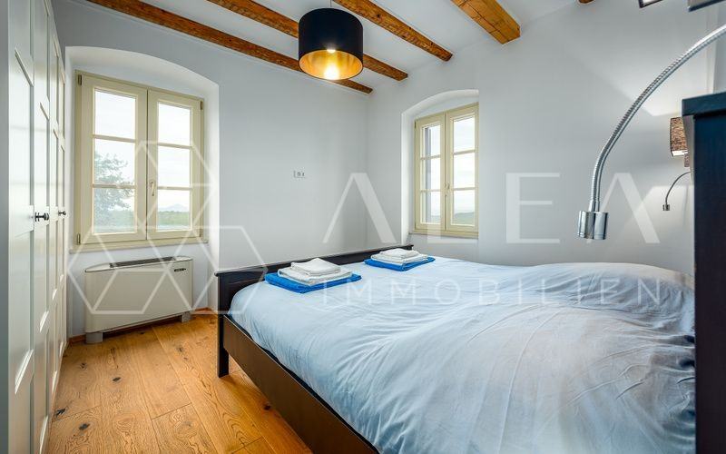 Poseban naglasak su prekrasni podovi: u dnevnom boravku čeka vas glazirani vapnenac, dok je u gornjim spavaćim sobama elegantan hrastov parket.