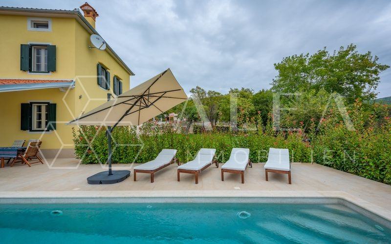 Kompletno renovirana dvojna kamena kuća s bazenom smještena je u malom istarskom mjestu Sv. Lovreč Labinski u istočnoj Istri, oko 14 km udaljenom od Labina. Udaljenost od najbliže plaže odnosno prekrasne uvale Tunarica iznosi svega 1km. Sveti Lovreč Labinski je mirno mjesto, okruženo zelenilom i netaknutom prirodom i kao takvo idealno za ugodan obiteljski život ili savršen odmor.