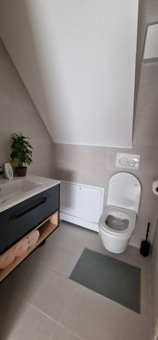 Kompletno adaptirana kuća (uporabna dozvola) lijepog rasporeda u mirnoj ulici u Podvrhu kod Samobora. Sastoji se od ulaza, kuhinje sa malom ostavom, dnevnog boravka i blagavaone, kupaonice i wc-a u prizemlju, te 3 prostrane spavaće sobe na katu, ukupne neto površine 110 m2.