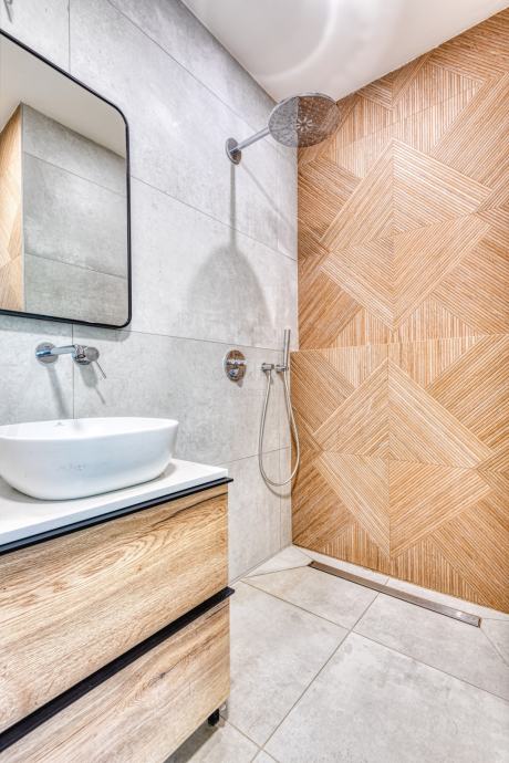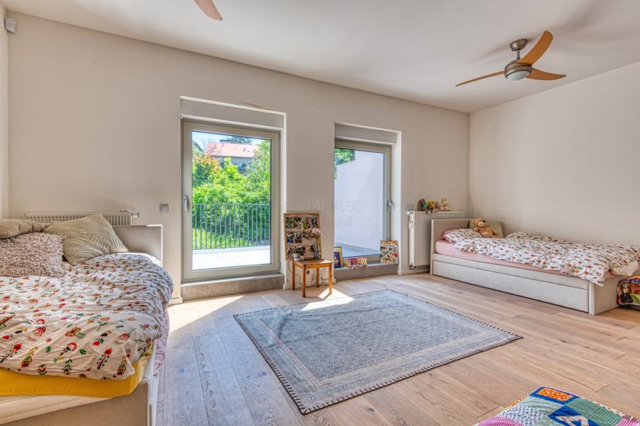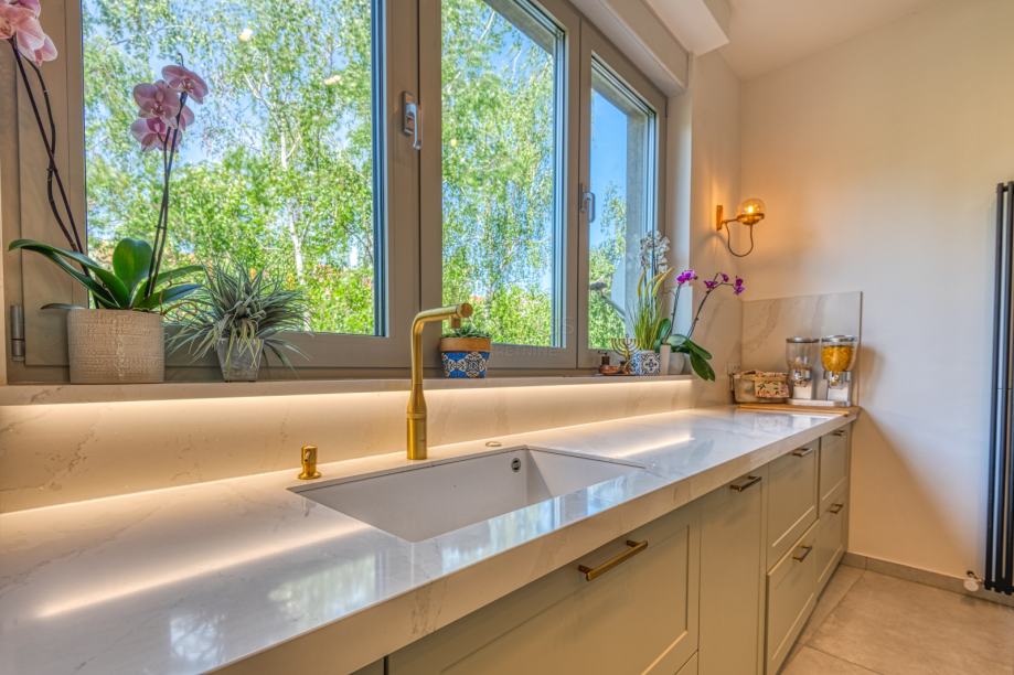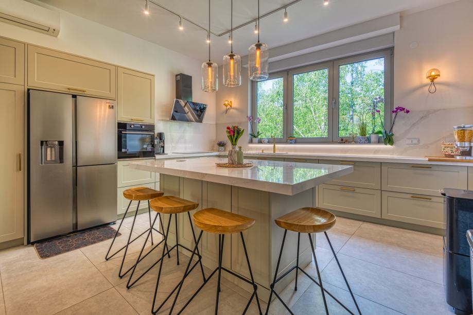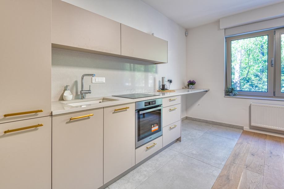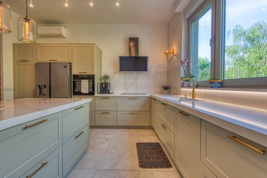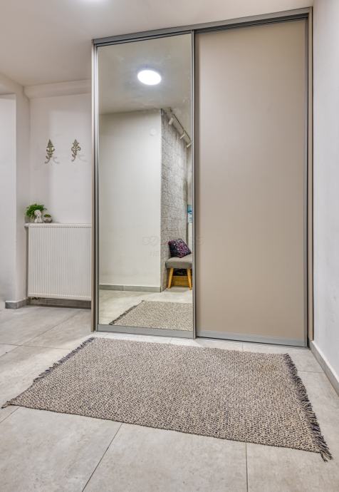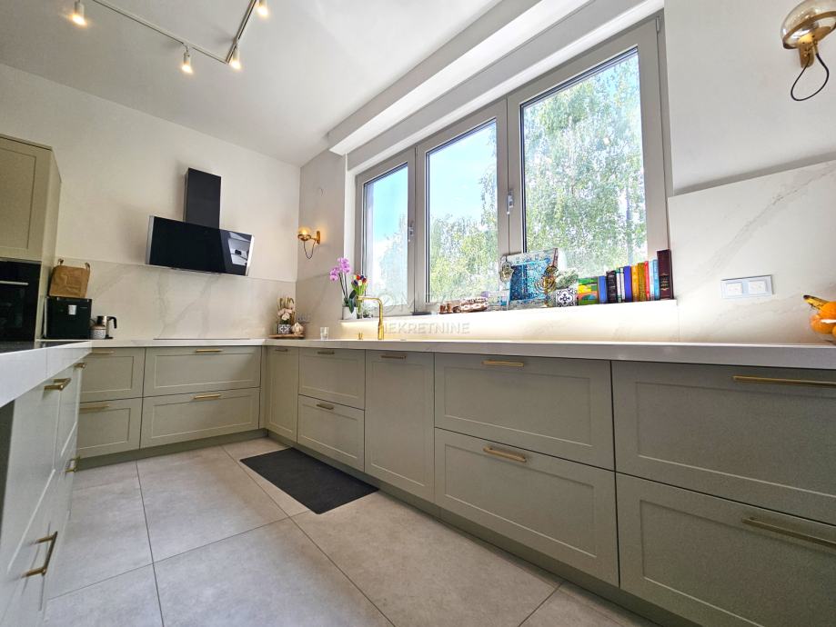 The renovation used exclusively top-quality materials and equipment; a thick concrete structure made in accordance with all professional rules, aluminum windows with triple glazing, custom-made designer furniture, GROHE sanitary ware, top-quality tiles and parquet, DAIKIN air conditioning units in all rooms, gas central heating with high-quality radiators and a smart home management system, fireplace, water purification and softening system, smart system for managing blinds and lighting via a remote application.