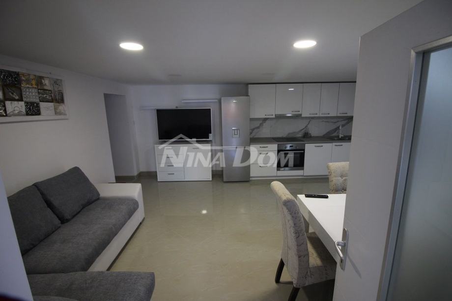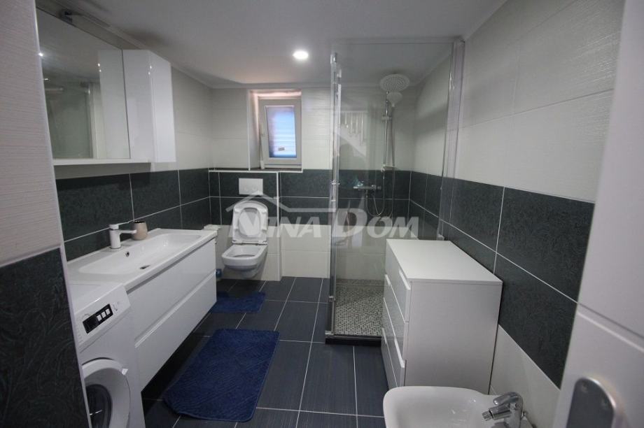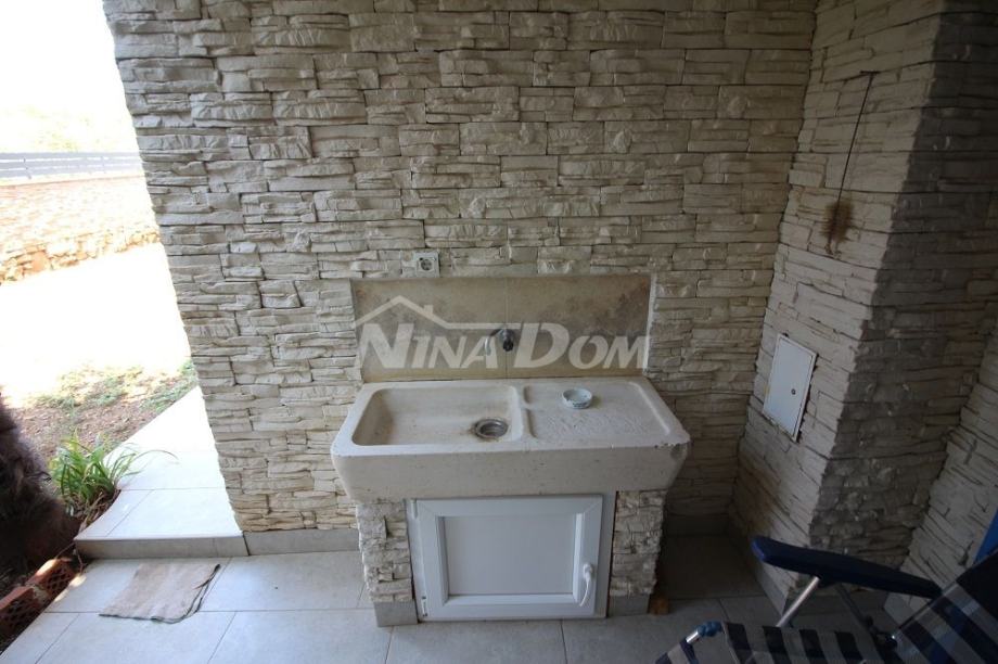 Prizemlje: kuhinja s dnevnim boravkom i blagovaonicom, dodatnom prostorijom, kupaonica. Garaža.