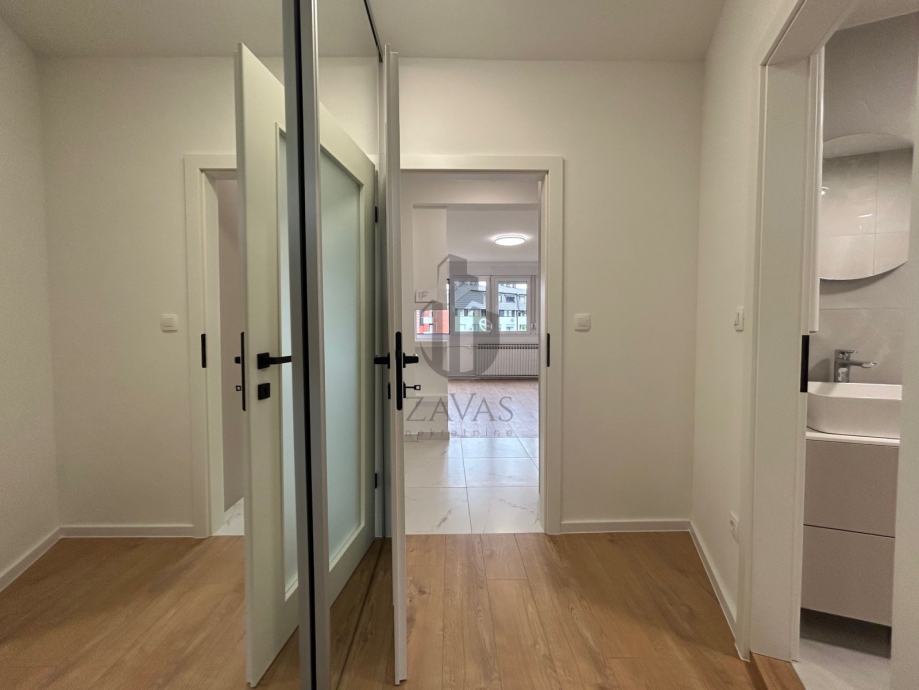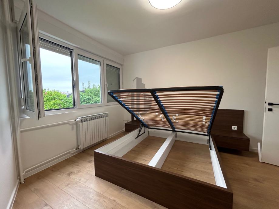 Prije tri mjeseca stan je u potpunosti renoviran — zamijenjene su sve instalacije, ugrađena PVC stolarija, postavljena nova kuhinja sa svim uređajima, uređena kupaonica te namještena spavaća soba s novim namještajem.