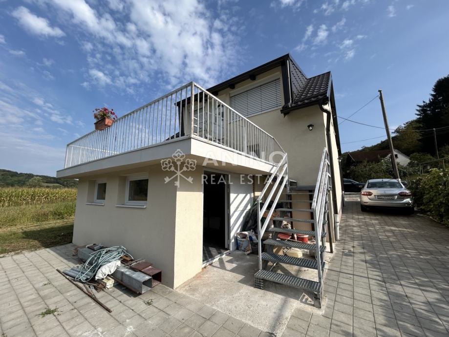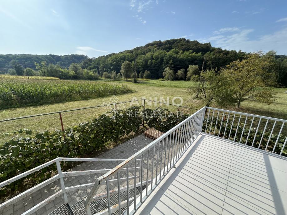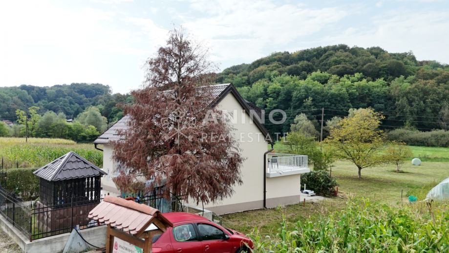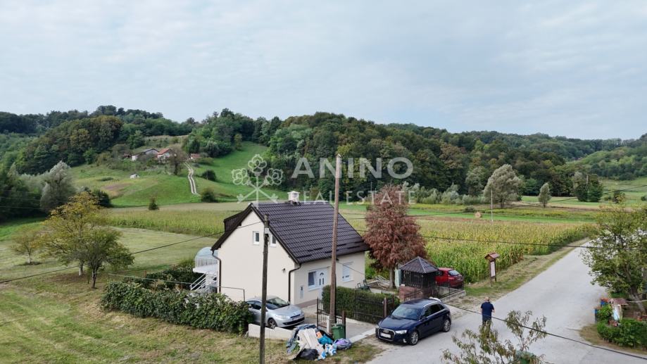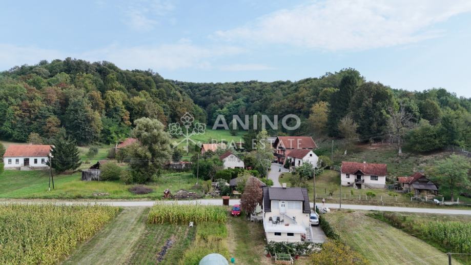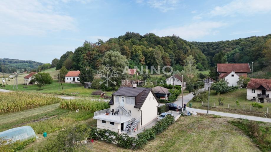 Kuća se nalazi u mjestu Donji Zbilj, Velika Horvatska, u mirnom i zelenom okruženju koje pruža idealne uvjete za miran obiteljski život ili odmor daleko od gradske gužve. Naselje je manje, ali vrlo ugodno za stanovanje, s osnovnim sadržajima u neposrednoj blizini – odmah preko puta kuće nalazi se trgovina.
