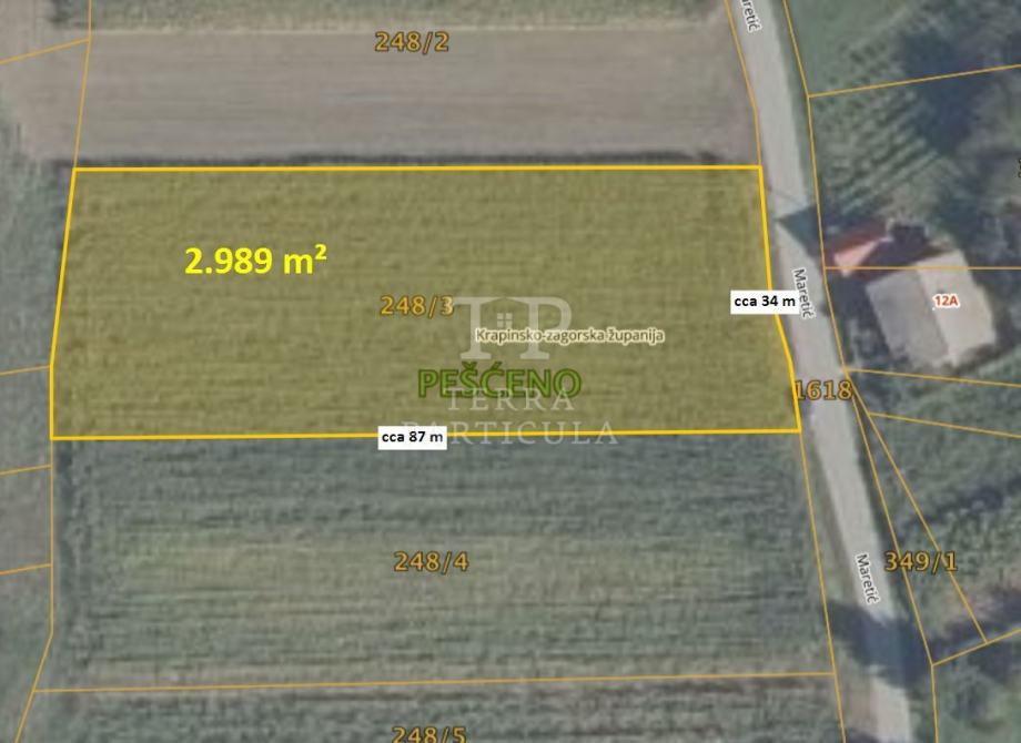 Na prodaju nudimo poljoprivredno zemljište površine 2.989 m². Nalazi se u neposrednoj blizini kuće na adresi: Maretić 12A, Konjščina.