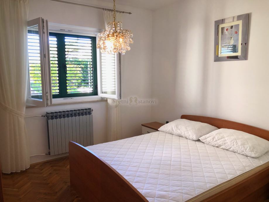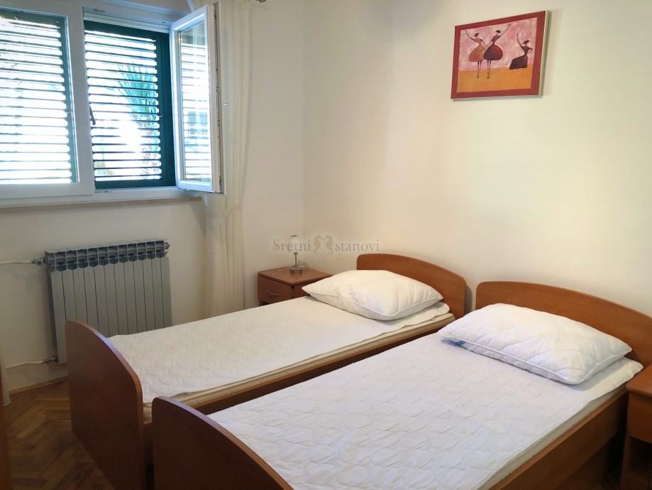 Apartman u prizemlju ima oko 150 m2 i sastoji se od ulaznog hodnika, terase, dnevnog boravka s kaminom, kuhinje i blagovaone, 3 spavaće sobe i 2 kupaone.