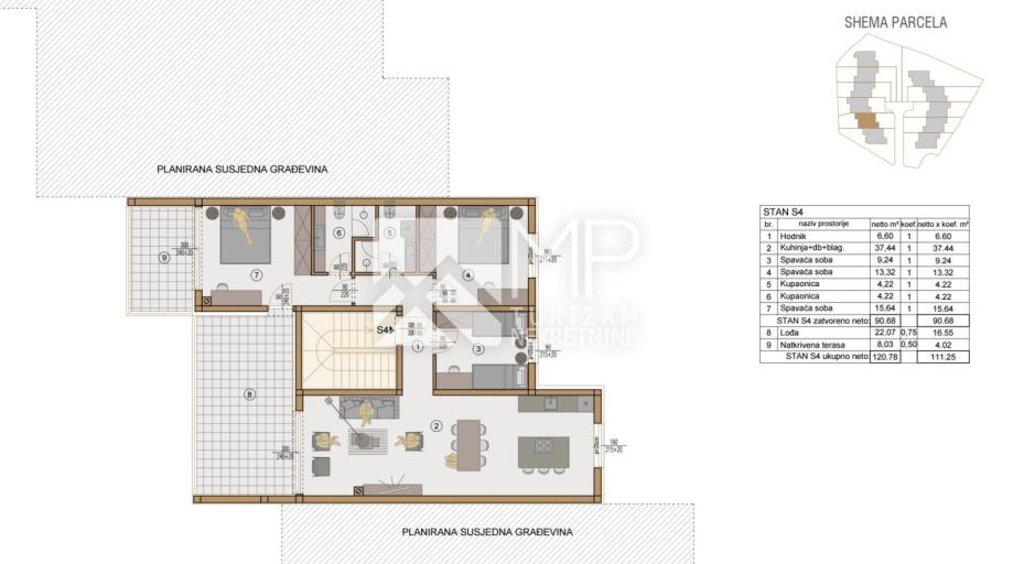 Penthouse S4 nalazi se na drugom katu i ima ukupnu površinu od 111,25 m².