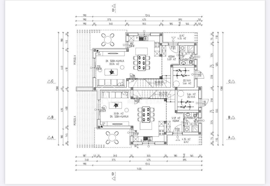 Sa prednje strane dvojnice smješten je bazen s pergolom.