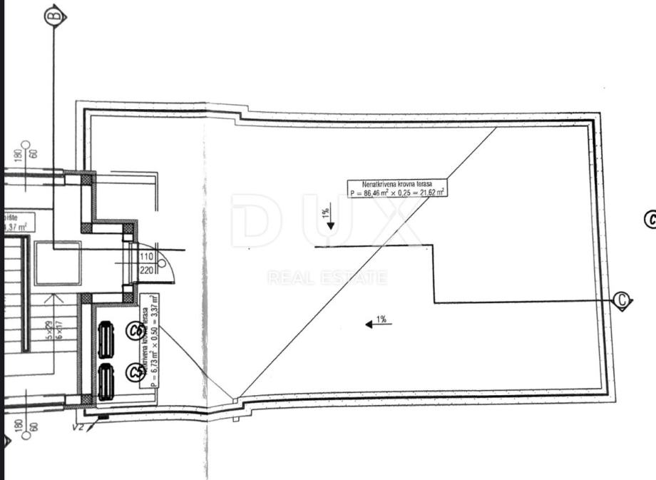 Natkrivena krovna terasa: 6,73 m² (koef. 0,5)