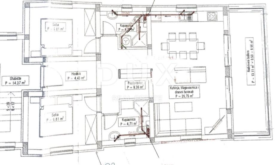 Dnevni boravak s kuhinjom i blagavaonicom: 29,75 m²