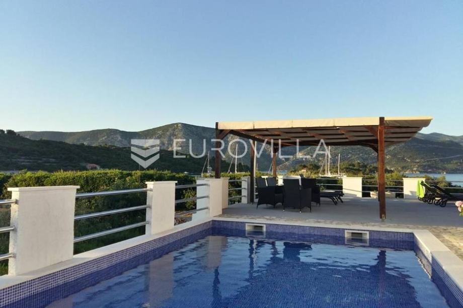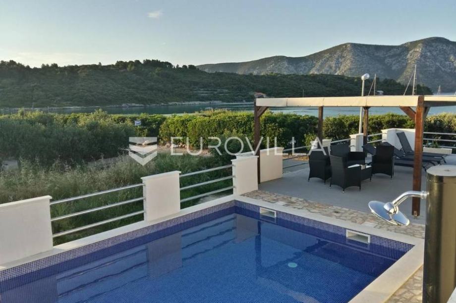In a quiet bay in the north of the island of Korcula, in the first row to the sea on a plot of 905 m2 is located this beautiful house with pool, beach and private boat mooring.Surrounded by a well-kept garden enriched with traditional Mediterranean plants, the house spreads over two floors with a...