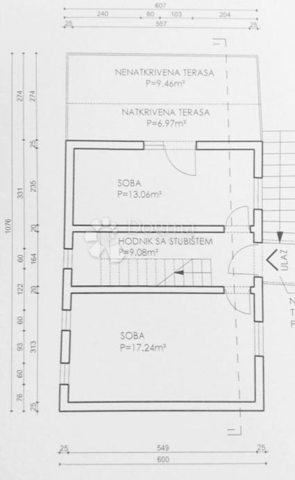 Kuća ima potrebnu dokumentaciju koja omogućava budućem vlasniku da je dovrši u suvremenom stilu.