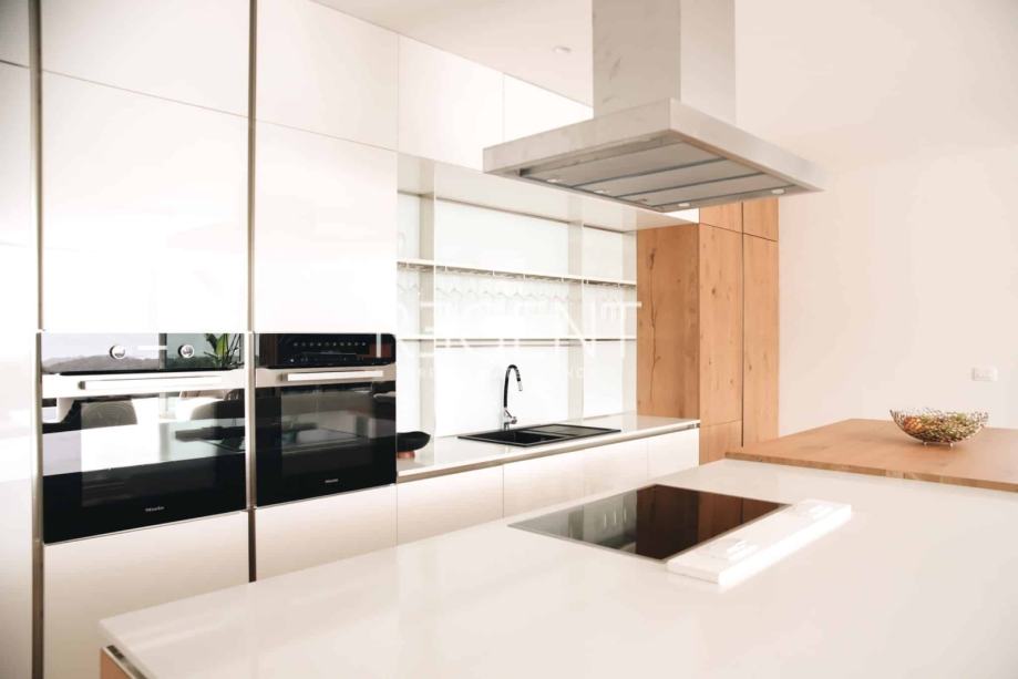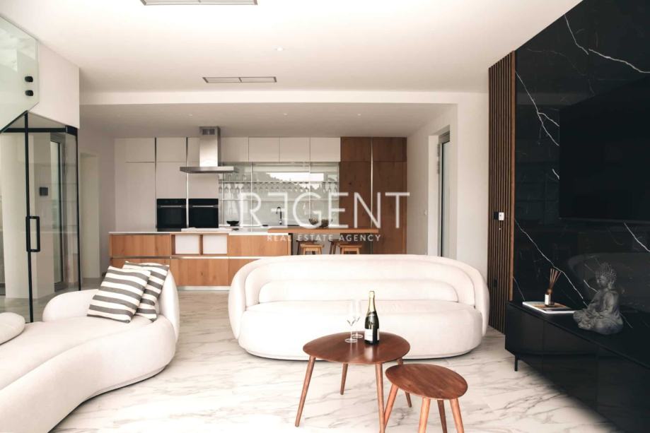 Prizemlje 170,70m2: dnevni boravak s kuhinjom i blagovaonicom, prekrasnom terasom, infinity bazenom, 4 spavaće sobe s kupaonicama.