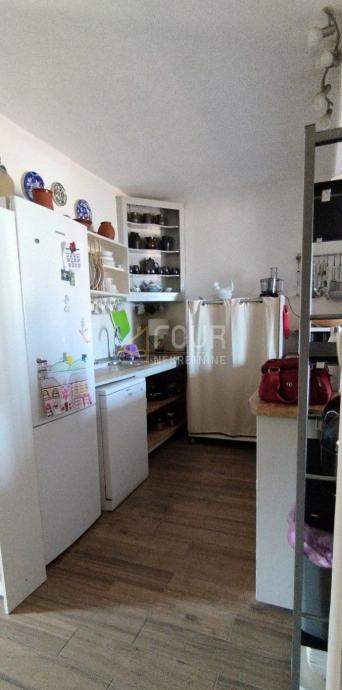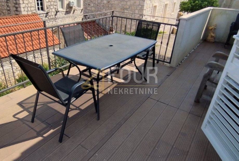Prizemlje nudi dvoetažni stan s dvije spavaće sobe, dnevnim boravkom, kuhinjom i balkonom od 15.69m2 koja pruža predivan pogled na more. Na gornjoj etaži (visoko potkrovlje) nalazi se prazan prostor s potencijalom za dodatnu adaptaciju, također s pogledom na more.