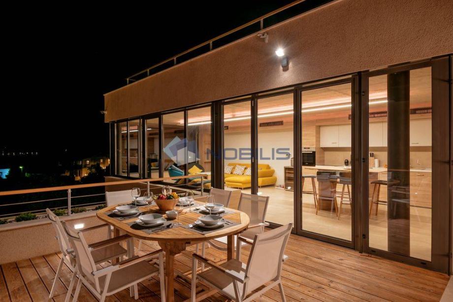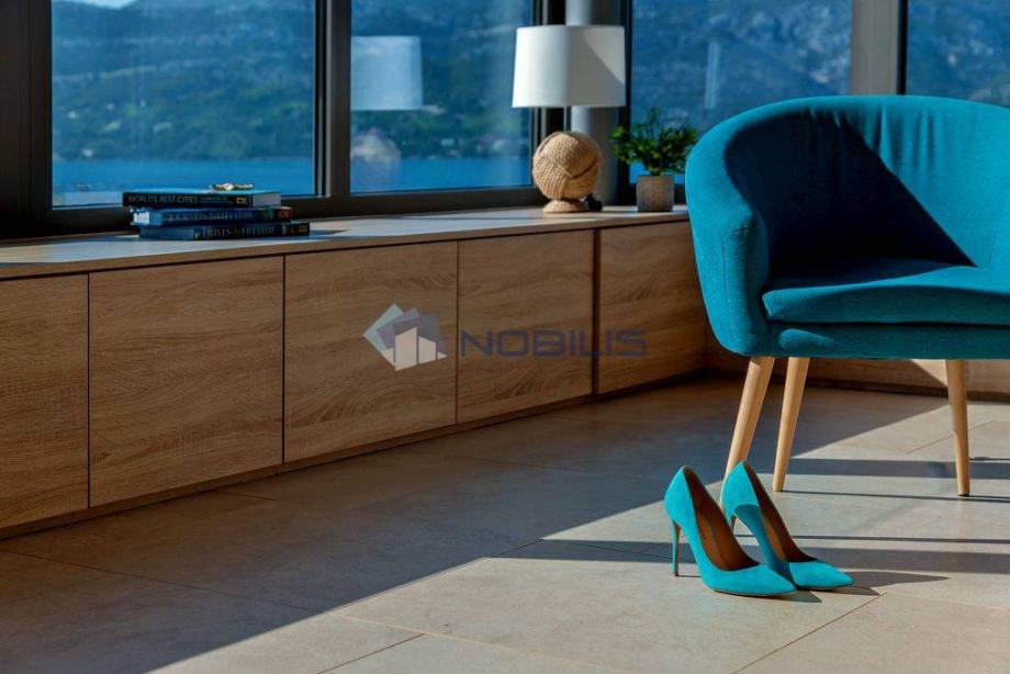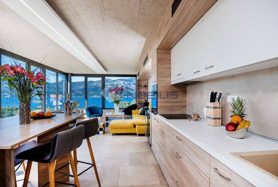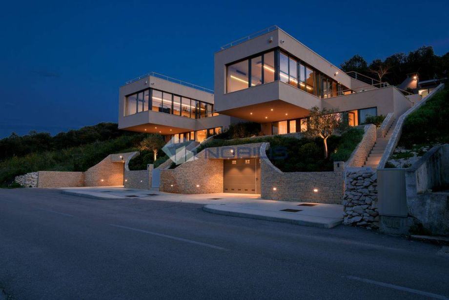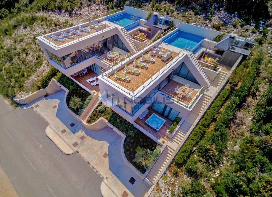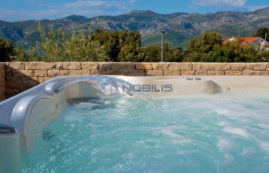 Korčula - luksuzna villa - novoizgrađena vila ima krovni bazen s grijanom morskom vodom na otoku Korčuli, saunu, teretanu i jacuzzi te prekrasni otvoreni pogled na more i i Pelješac, udaljena je samo 50 m od mora. Mjesto s kojeg se pruža pogled na zalazak sunca. Vila je sagrađena po svim pravilima struke sa najboljim i najkvalitetninjim materijalima koji su danas na tržištu. Vilu je gradila švedsko-hrvatska firma sa dugogodišnjim stažom u te dvije države.