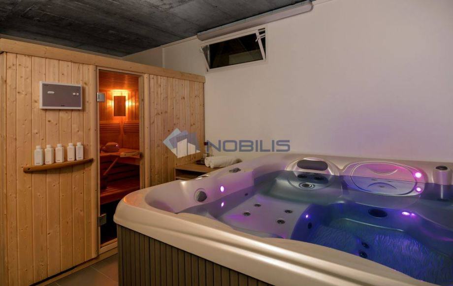 Prizemlje ovog korčulanskog dragulja skriva garažu odakle ulazite u fitness dvoranu, idealno mjesto za ispunjenje svih Vaših wellness želja. Sauna i teretana upotpunjuju ovaj wellness raj u prizemlju.
