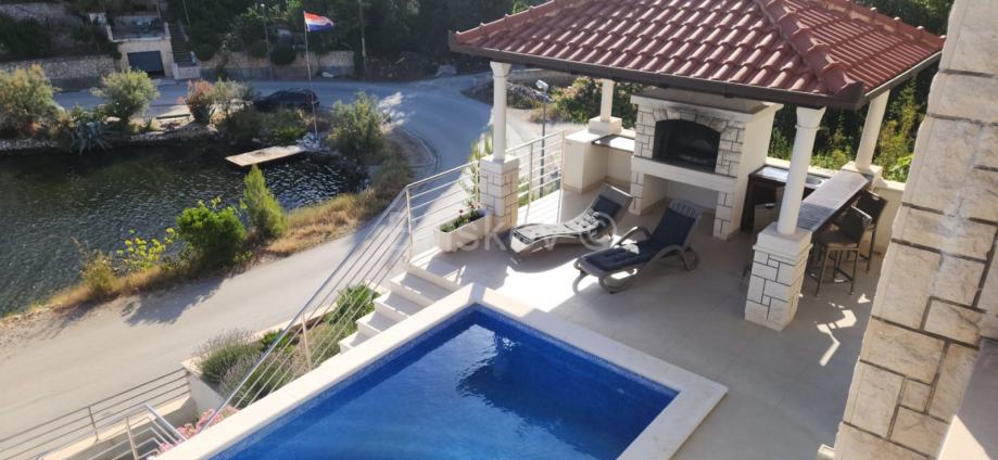 Korčula, Žrnovska Banja, vila stambene površine 280m2 s bazenom u prvom redu uz more na parceli površine 495m2.