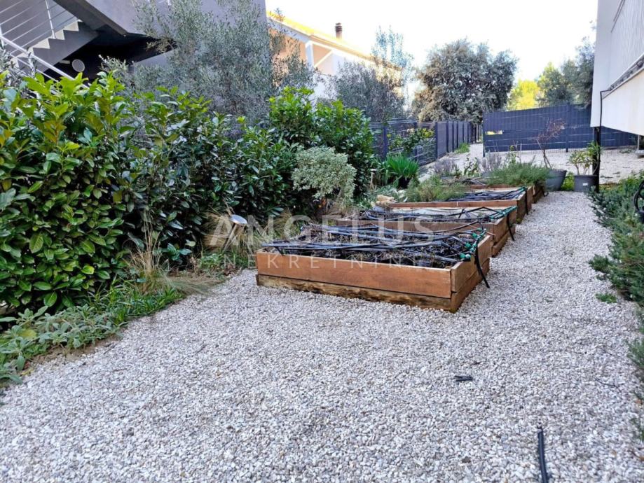 Uz stan dolazi i mogućnost veza u lučici za dvije brodice (cca 6-8 metara), što je idealno za ljubitelje nautike. Prostrani vrt pruža mogućnost uživanja na otvorenom prostoru, dok moderno uređenje stana zadovoljava sve zahtjeve suvremenog života.