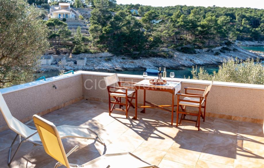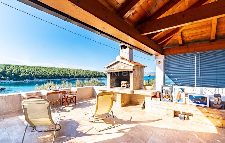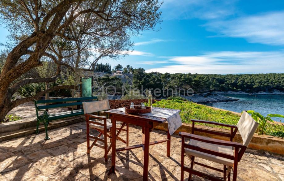 Posredujemo u prodaji kuće površine 134 m² koja je smještena u prvom redu do mora, u prekrasnoj uvali na sjevernoj strani otoka, nedaleko od Vele Luke.