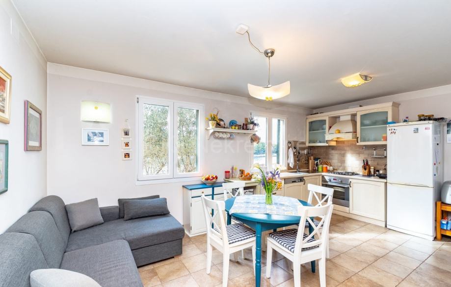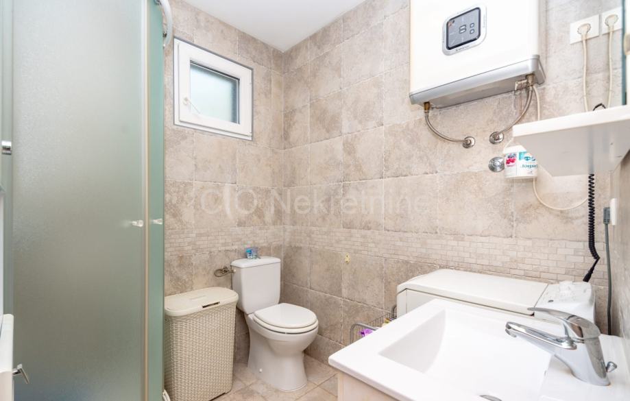 Nekretnina se sastoji od suterena u kojem se nalaze gustirna i spremište, te kata na kojem je smješten trosoban stan sa prekrasnom, vrlo prostranom, djelomično natkrivenom terasom i kaminom.