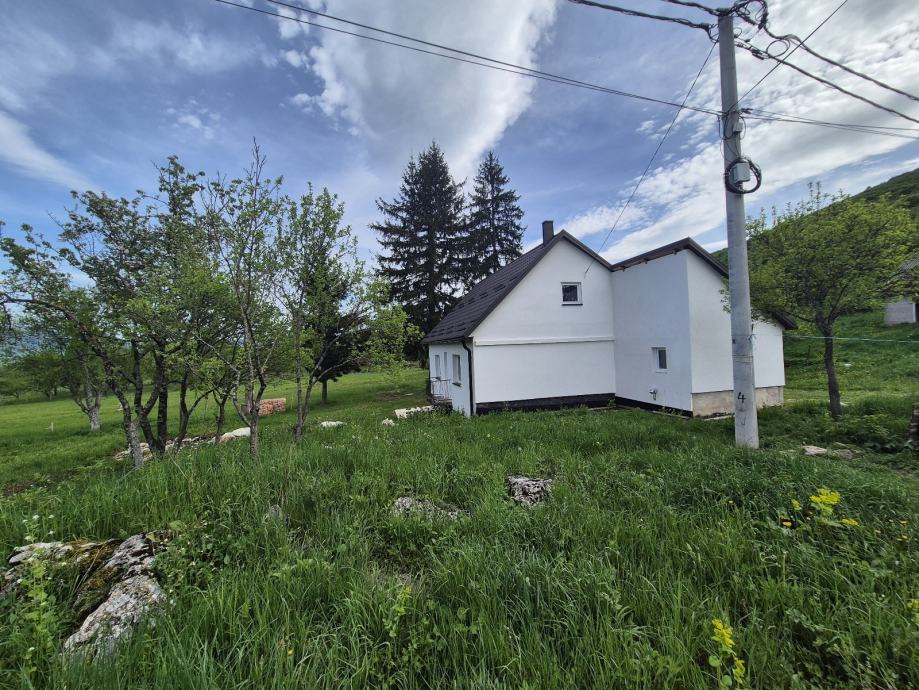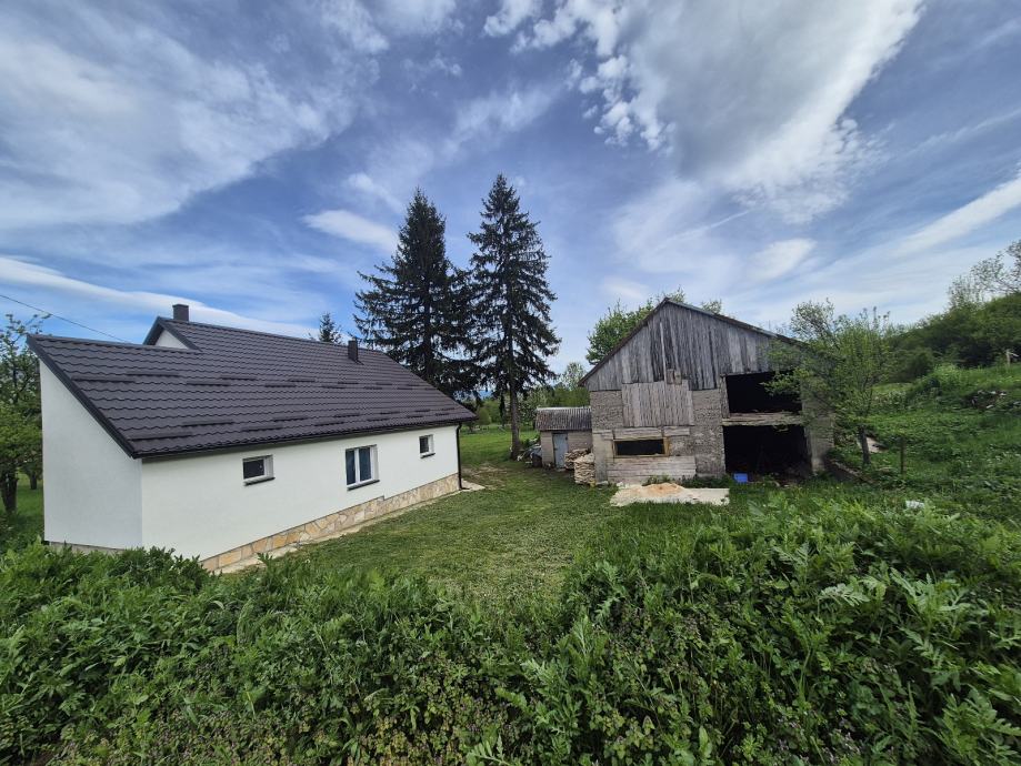 Prodaje se prekrasno imanje u Korenici, sa samostojećom kućom koja je djelomično renovirana te dva gospodarska objekta koji zahtjevaju kompletnu renovaciju. Glavna kuća sadrži 4 prostorije i 2 sanitarna čvora, te ispod cijele kuće podrum koji je uređen kamenom. Parcela na kojoj je kuća ima 2000 m2 i nalazi se u građevinskoj zoni, dok ostale parcele koje se vežu uz građevinsku ulaze u poljoprivrednu zonu. Imanje je udaljeno od centra Korenice 1.2 km. Kompletna dokumentacija uredna