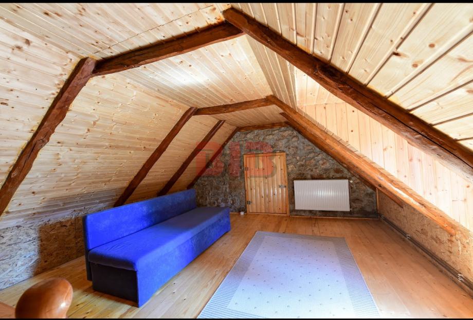 Kuća se nalazi na parceli od 150 m2, što omogućuje dovoljno prostora za vanjske aktivnosti.Kuća se sastoji od prizemlja gdje se nalazi dnevni boravak,kuhinja,blaovaonica i kupaonica,dok se u visokom potkrovlju nalazi spavaći dio.uz kuću se nalazi dupla garaža i spremište Grijanje je centrano na drva, što osigurava ugodnu atmosferu tijekom hladnijih mjeseci.
