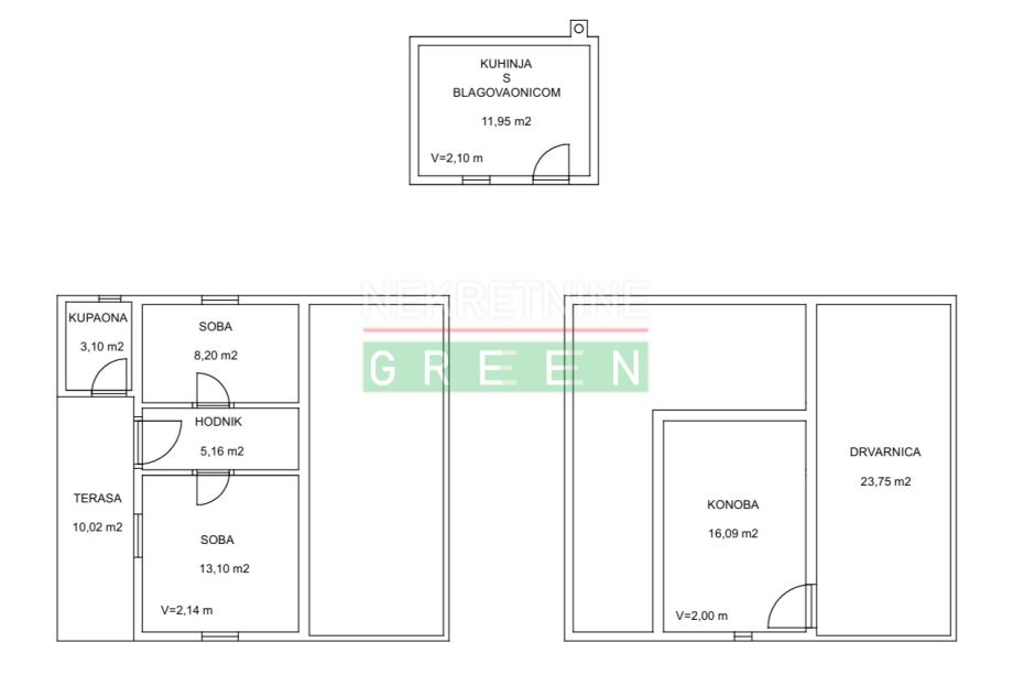 Kuća (GBP 63 m2) se sastoji od suterena, prizemlja i neuređenog niskog potkrovlja.