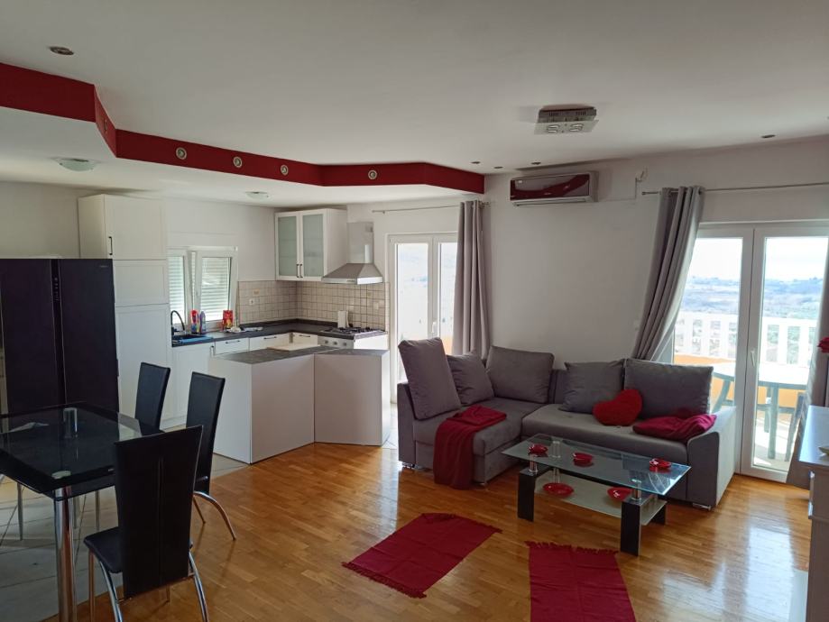 Stan se sastoji od kuhinje s blagovaonicom, dnevnog boravka, 2 sobe, kupatila i balkona. Stan je odmah useljiv i iznajmljuje se do 6/2025 za 550Eura+polog+režije.