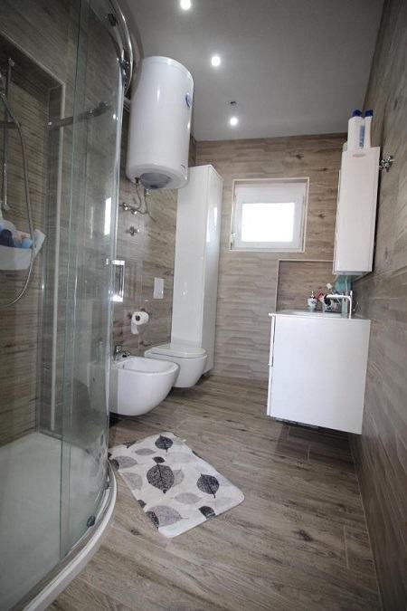 Prodaje se moderno namješten četverosobni apartman u prizemlju površine 100 m2, na mirnoj i tihoj lokaciji s pogledom na more u mjestu Proboj na otoku Pagu.