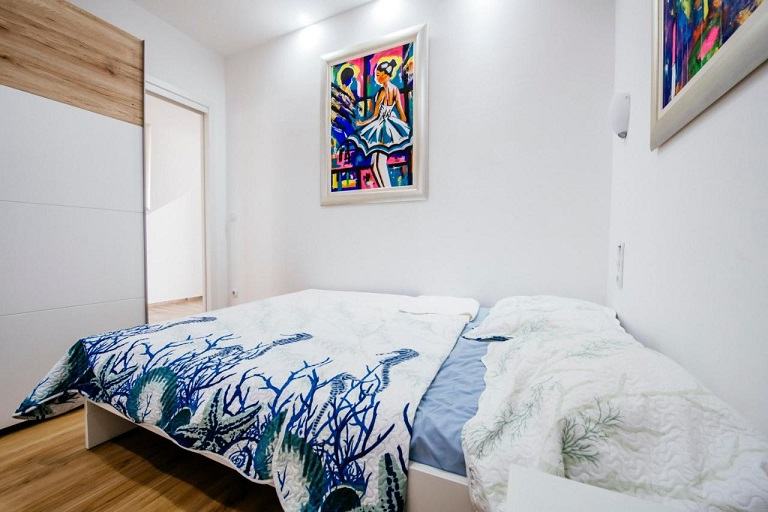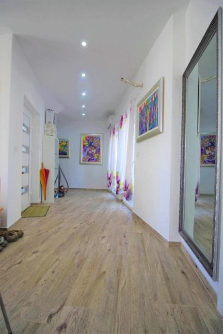 Sastoji se od kuhinje i blagovaone, dnevnog boravka, hodnika, tri spavaće sobe i dvije kupaone. Iz stana se izlazi na predivnu prostranu terasu.