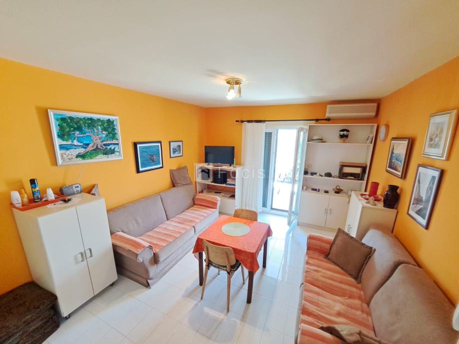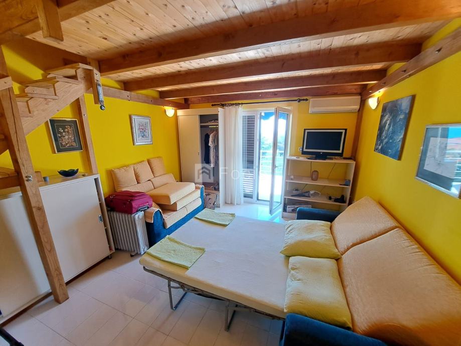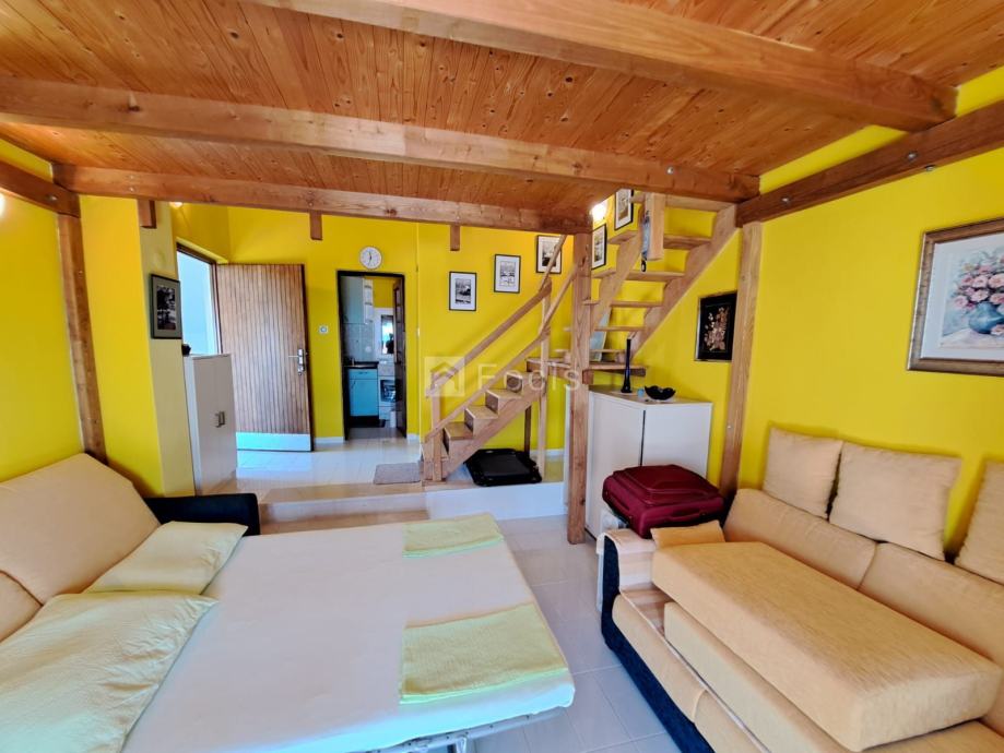 Prizemlje se sastoji od kuhinje, dnevne/spavaće sobe i kupaonice s izlazom na veliku natkrivenu terasu. Kat, do kojeg se dolazi vanjskim stubištem, se nalazi stan koji se sastoji od kuhinje, dnevne sobe, galerije u funkciji spavaće sobe, kupaonice i terase s pogledom na more.
